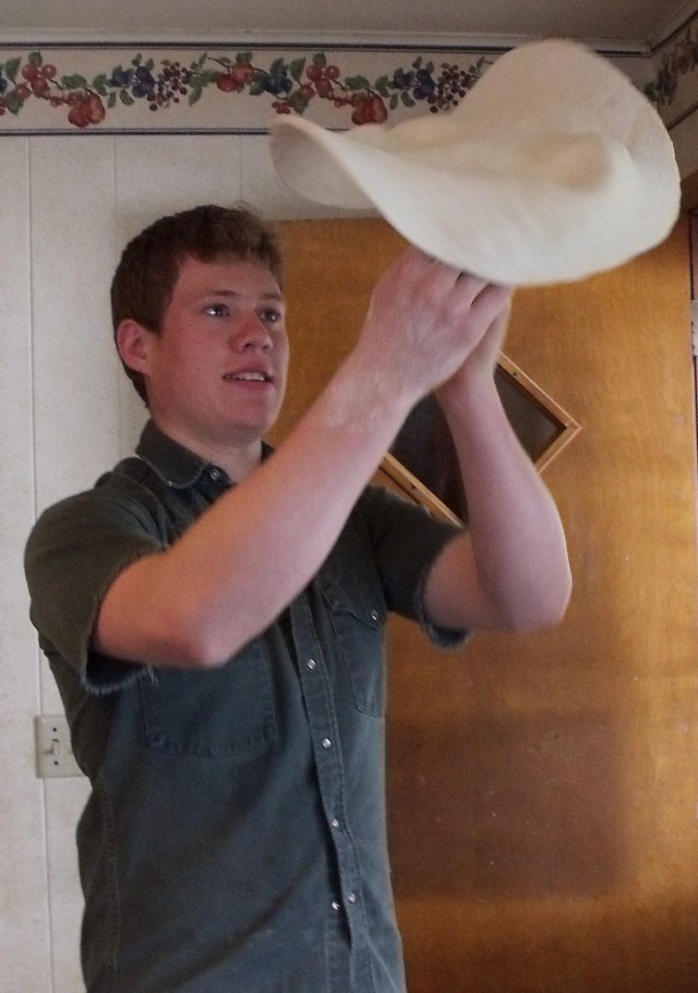 It turned out to be a very fun afternoon in our kitchen. I wish each of you could have smelled the room!!   As with any party, there ended up being a ton of leftovers, but not of the Stromboli.  We froze an extra apple pie, a bowl of donuts and the kids ate the leftover pizza today.  What seemed like a well planned evening didn’t really go as planned.  Luke and Clayton showed up late from a day of shearing out in South Dakota.  Then the semi truck hauling 28 Tons of coal out of North Dakota arrived very late and after dark.  He actually got stuck on the end of our driveway which has a gate and is hard to navigate under normal conditions with hay racks, trailers and in this case a 48 foot tractor-trailer.  The angels must have heard our prayers because somehow he was able to maneuver his way in to our farm-yard!  At one point we all held our breath as it appeared as though he would tip over with the very heavy load.  There was a ton of snow and ice on the road as well but with the addition of ashes placed on the road and tires thankfully there was no mishap.