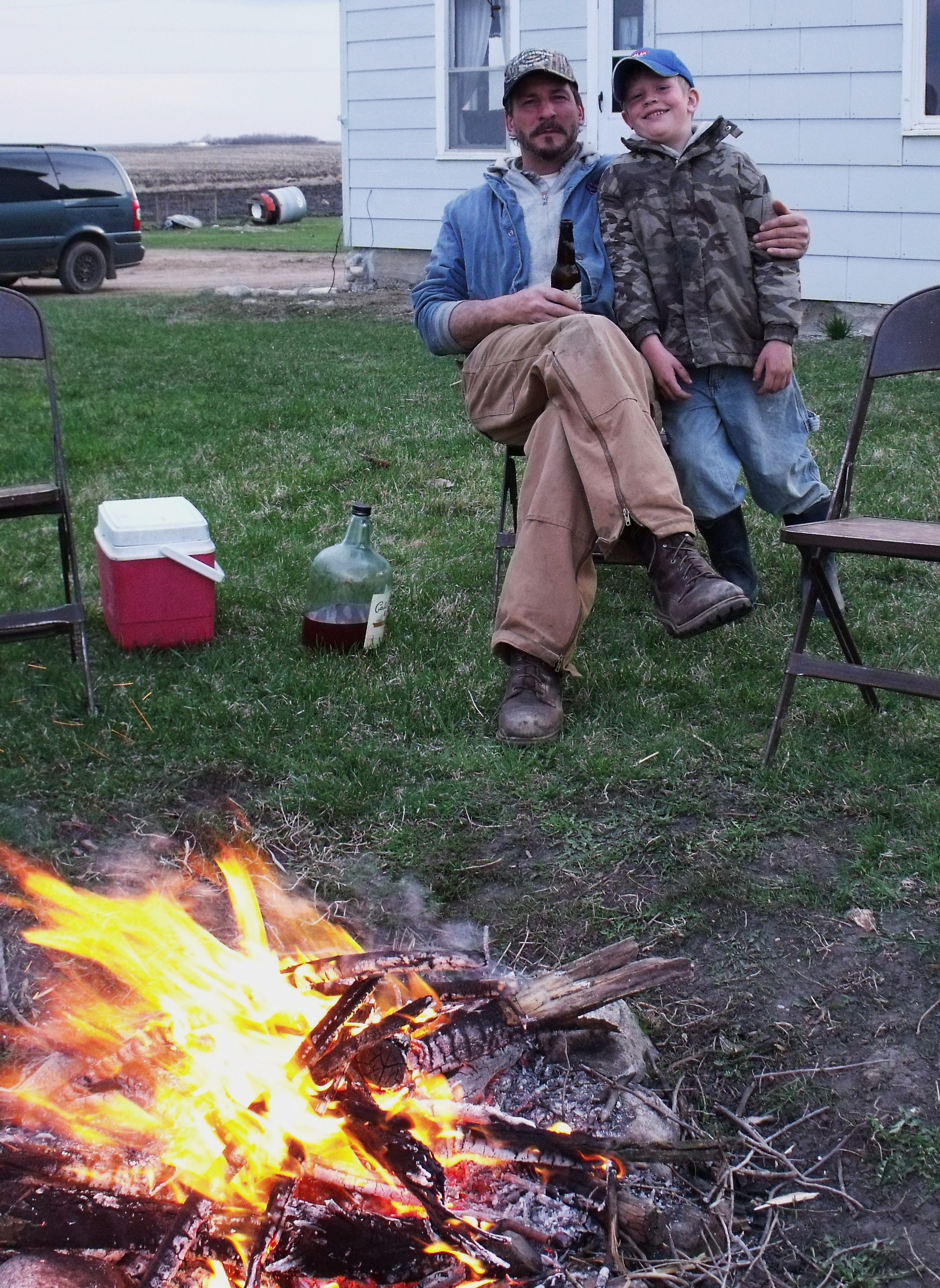 At the end of a long work day we still had time for a family bon fire at one of our daughters farm. Below is Dad and Mario, two of the many loves of my life. Fred’s favorite saying around our home is “Life is good, by golly”. I totally agree with him:)