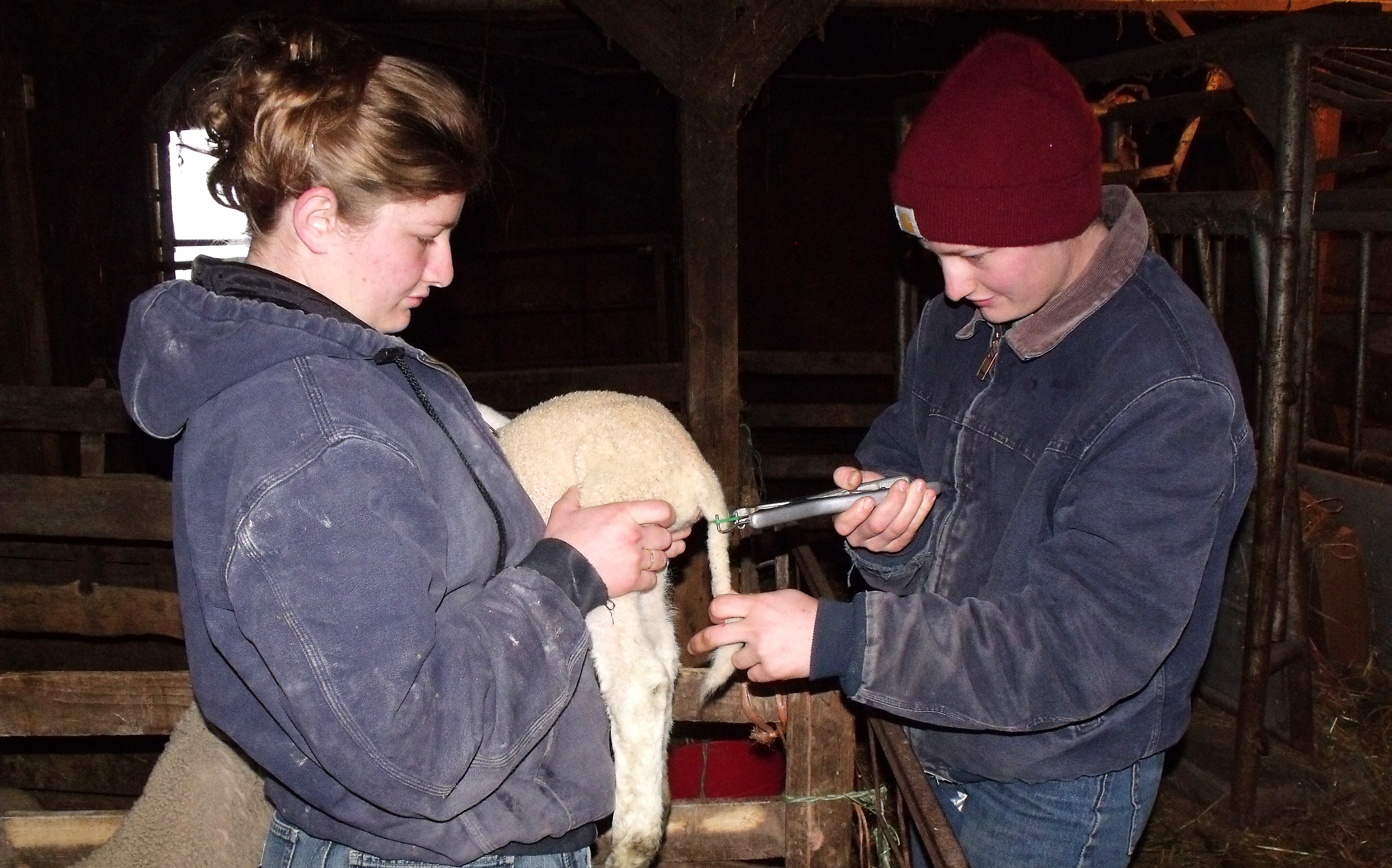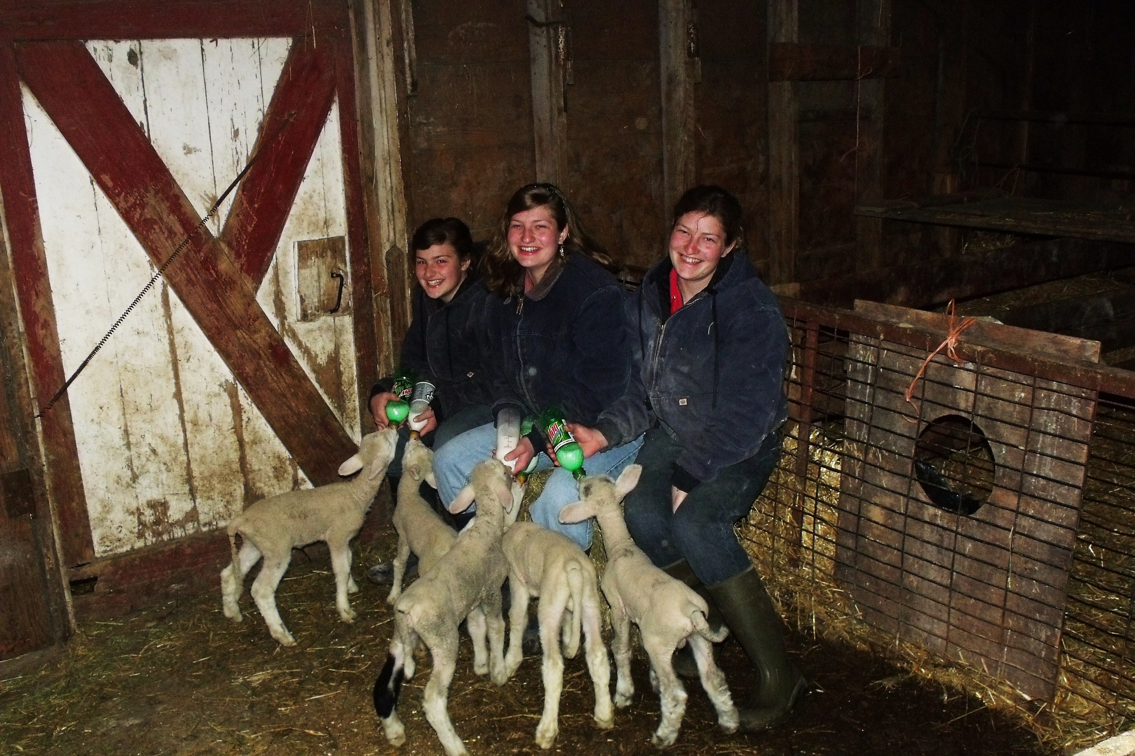 For the first many years it was Fred and I doing all the chores and then as the years went by I found many of my old jobs had been divided out to the kids. Now that my youngest is almost seven, I am finally able to be back out there again. There is so much to look forward to this year. Some of the photos that I will post are of chores and odd jobs being accomplished very recently. The top two photos are of the girls banding tails and of Mario and Caleb working on the new fence for the apple orchard and new hops field. Others are of farm animals, chores, fence building etc. This is just a small sample of what goes on here. If you hold your mouse over the photo it shows what we were up to.