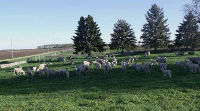 Lambing went very well this year (98 lambs from 60 ewes) and after the kids put the new fences up around the farm we opened up the first paddock. What a lovely sight to behold, with all the green grass and bright yellow dandelions.  It is a real pain having to open two gates to get out of the farm-yard, but in another week or two, depending on how much the sheep consume, we won’t have that to deal with for a while.  We do have to be very careful not to run the lambs over, as they are slow to move and very trusting.