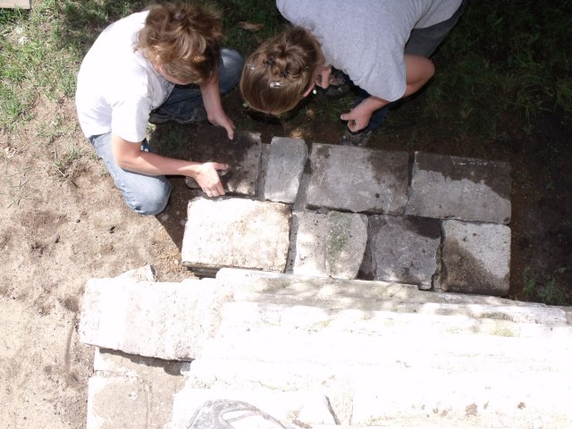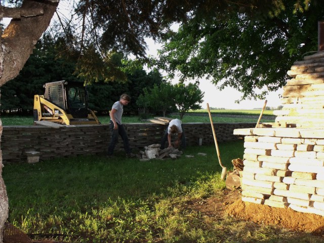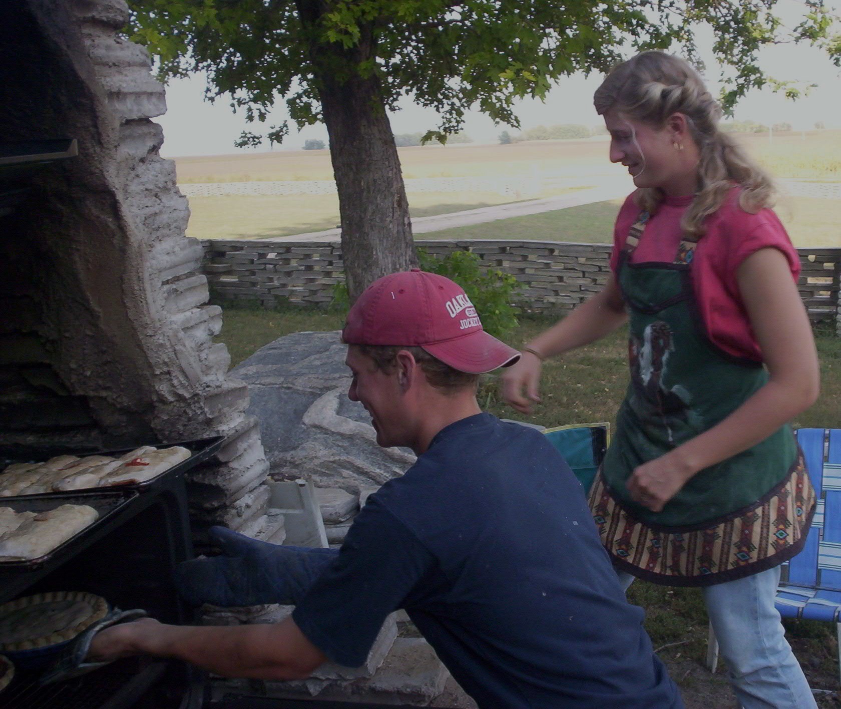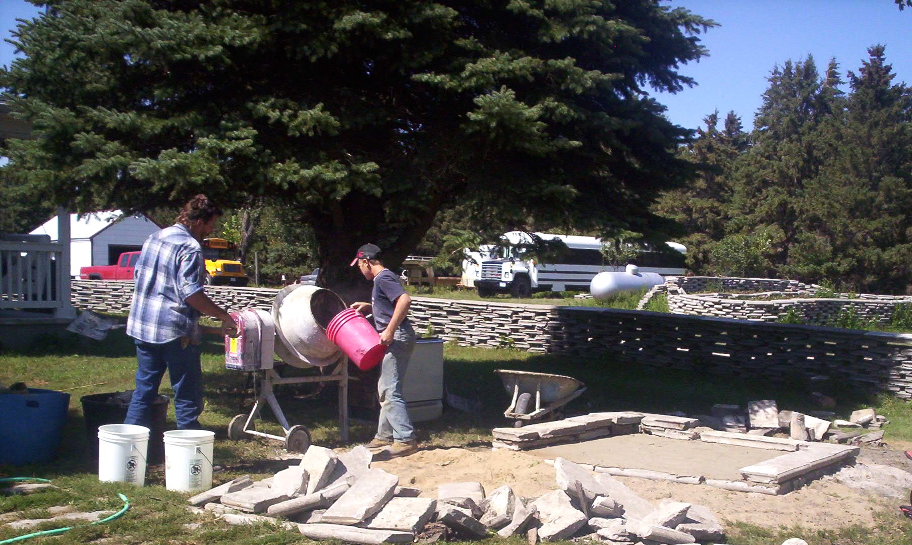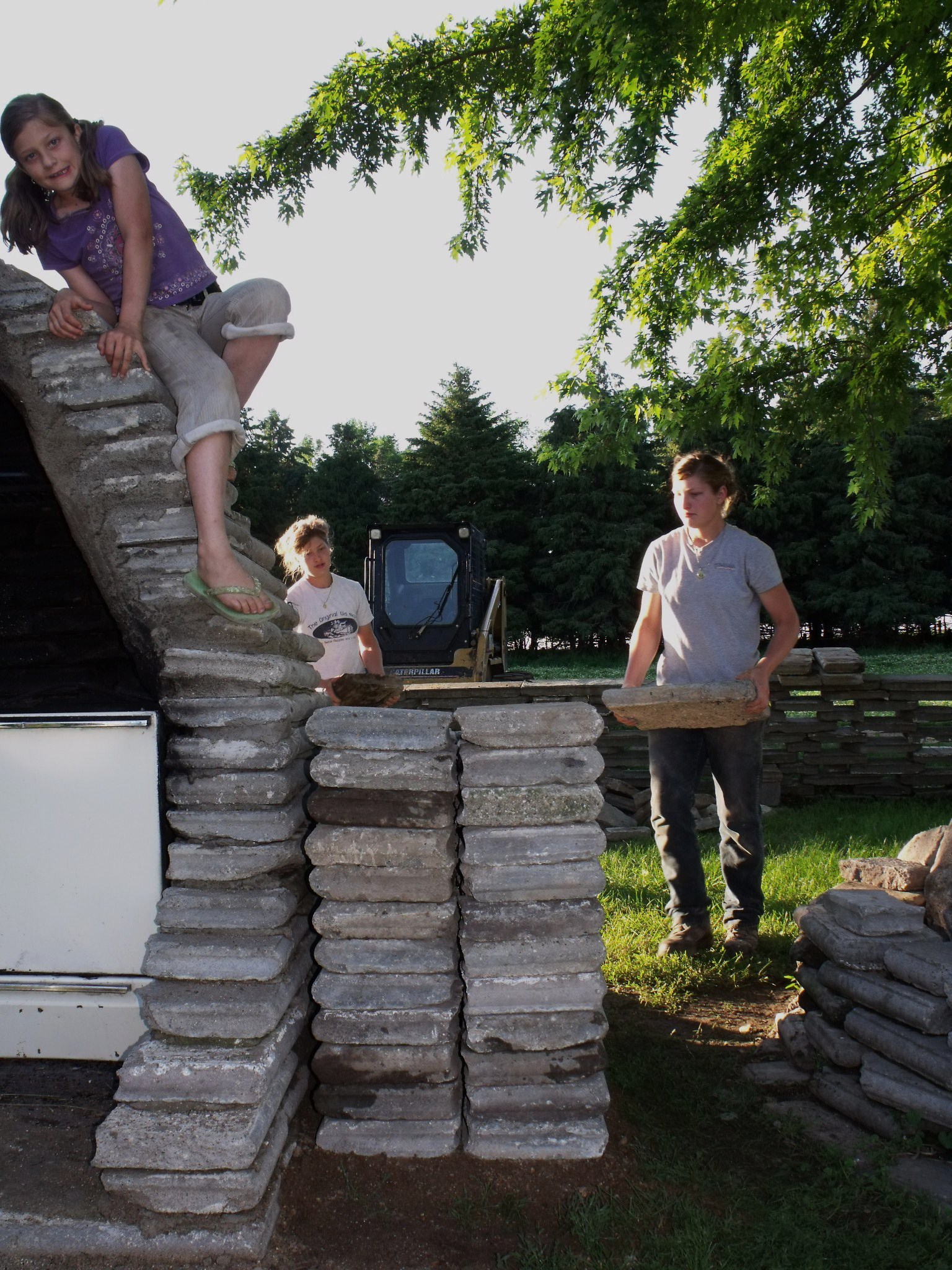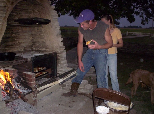 He always finds a way to recycle things on our farm. For the pizza oven, he took an old gas stove of mine (we go through them often) and used that for the oven. He and Caleb mixed all of the cement one batch at a time. They used silo staves which we had plenty of, having taken down over 22 silos over several years. We also had some old bricks from who knows where, but they were sitting out behind the barn. I think the only cost that went into the project was that of a bag of cement. Even that was left over from some other odd project. He described to me in great detail how he would go about building this, but I had a hard time seeing what he had designed in his mind’s eye. I can never seem to visualize what he pictures in his mind so easily. The original fire-pit and pizza oven took around two days to complete.