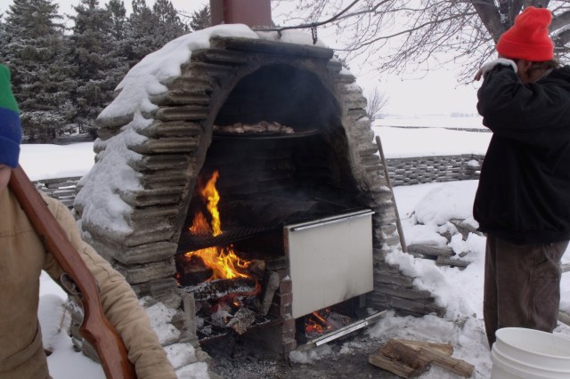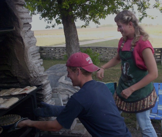 We don’t expect the bars to hold up too long but since we didn’t put any money into it, we can always rebuild it again. We’ll see how it holds up under a Minnesota winter. Below are a couple of photos of our family using the fire pit/pizza oven.