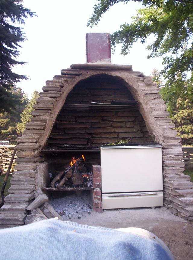 I’m going to post below the photos that had been taken at that time. (Hold your mouse over the photo) If you would like to try to build an oven, this may give you some idea how to go about it. You can switch materials and even style, but hopefully this will spark the idea that will grow into something used for many nice gatherings with good food, friends and conversations, both deep or casual. Even burned pizza tastes good when shared with others! I’m not really sure whether it is the flavor of the foods created here or just the out-door atmosphere spent with friends and family, or maybe the time spent waiting with others to sample the meal as we converse. Whatever it is, building this somewhat homely stove was well worth the effort and has been a great source of satisfaction.