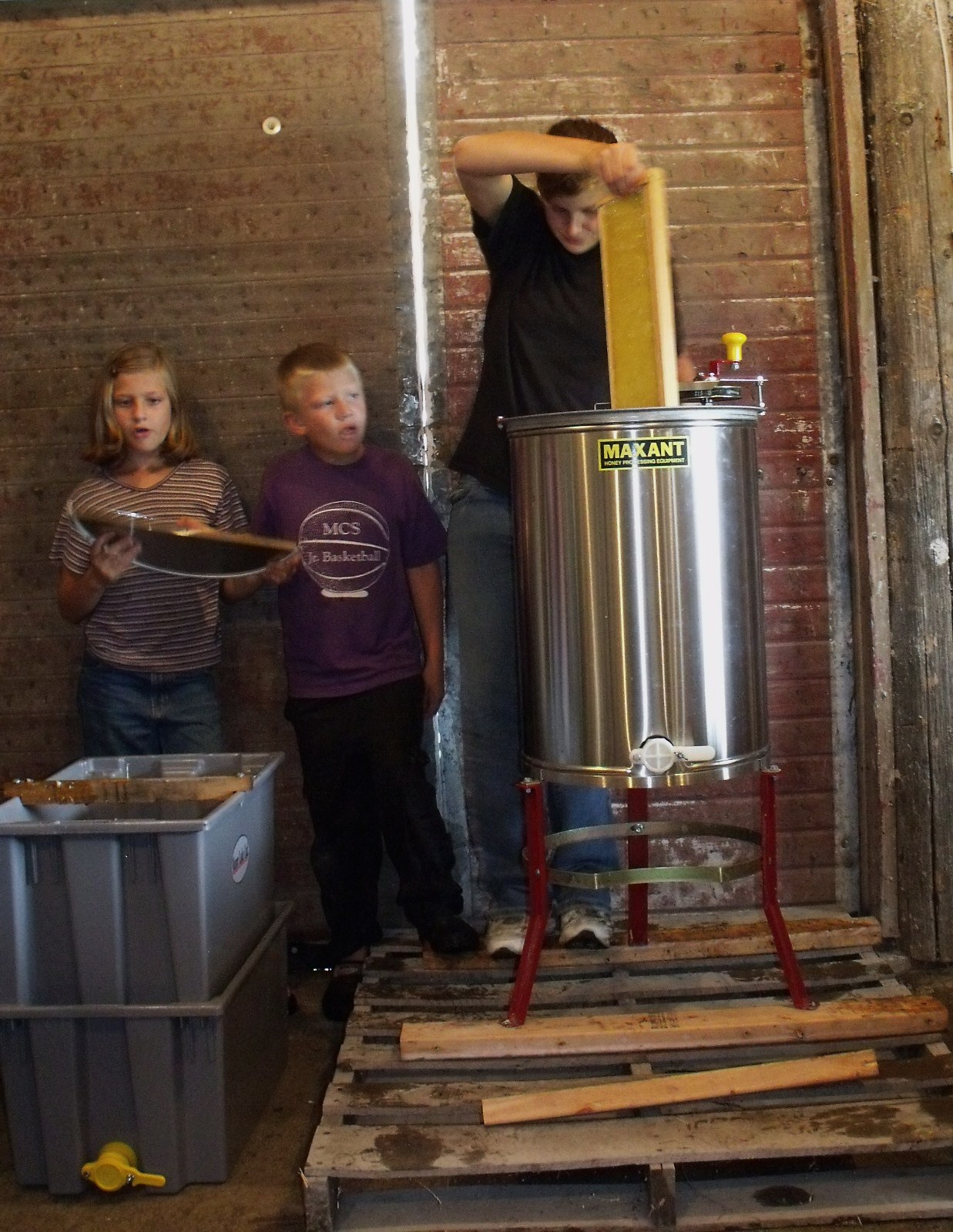 We live on a small family farm located in S.W. Minnesota, near the South Dakota border. The source of our honey is from white and red clover. The honey appears as liquid gold in color. Our honey is extracted using a hand cranked centrifugal force extractor. Then the honey is screened once into a holding container from which we later fill the small honey bottles. We do not heat treat the honey nor add any other ingredients. Pure and natural is our Minnesota honey! What could taste better?