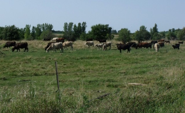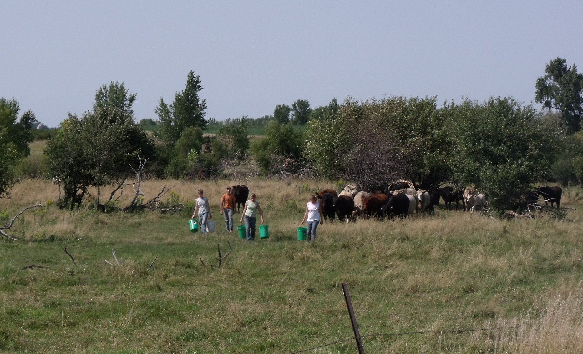 The beautiful pasture above is not too far from our farm and the owners were generous enough to allow us to harvest apples. There are at least nine trees with apples on them this year. The problem was and still is that the cattle also want the apples, and I am afraid of the bull. He is still a young bull, very large and somewhere in the back of my mind lingers the memory of accidents that I have read about throughout the years of people who have been attacked by bulls. But, the thought of apple cider, apple crisp, canned apple pie filling, sauce and apple jelly are enough to make us work for these apples. Besides, the electric-barbed wire fence isn’t too terribly low to crawl under, very quickly if need be. I know, because I practiced it over and over to make sure I could do it:) Yesterday, we threw apples to the cattle to keep them happy, and happy they were.