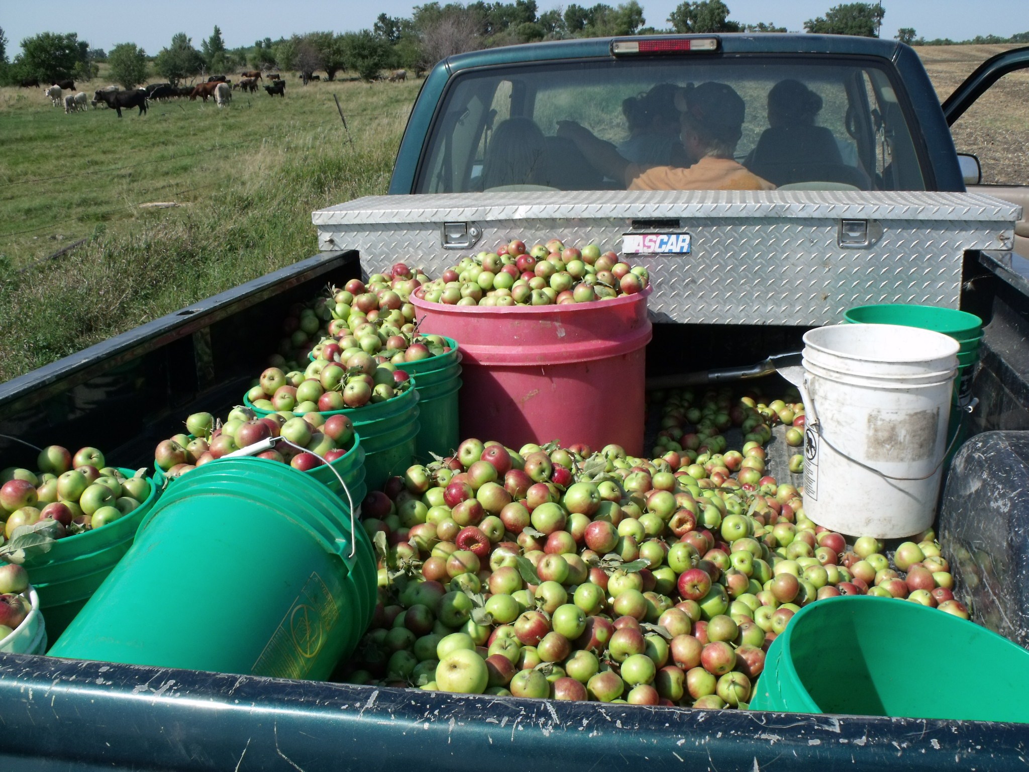 These photos are from last week some time and since then we have been back for two more “apple runs”. I am guessing that we still have another trip left to the pasture, having left the crisp pie apple varieties there.