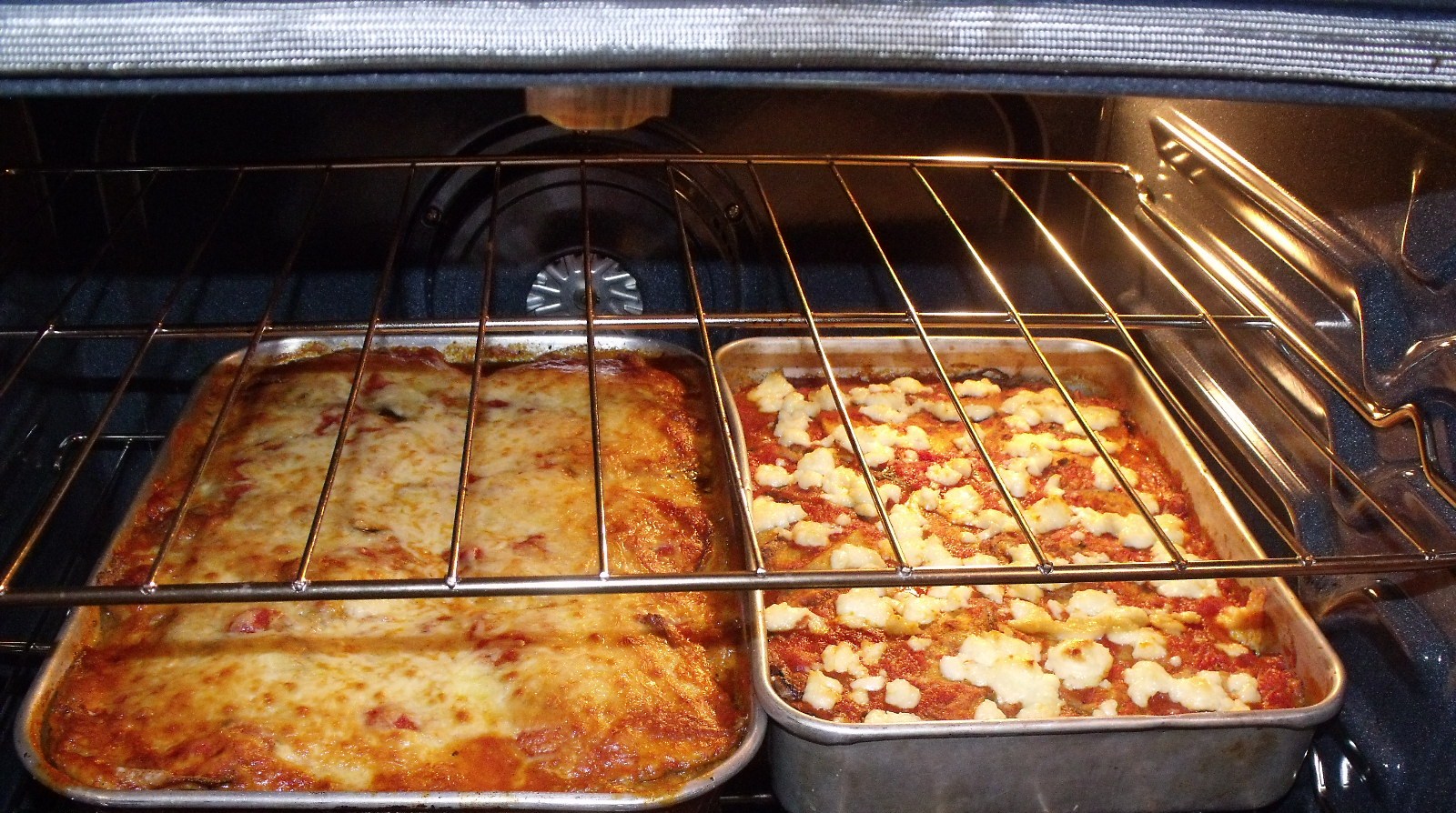 I’m not sure what I was thinking, but the very same evening I made up two Eggplant Parmesan pans. I lost a bet with mom though, so sure was I that the family would eat both trays, only I underestimated how “heavy” the Cavatelli was. We barely ate one tray of the parmesan, serving 12 people.