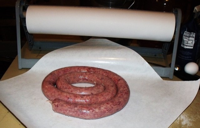 Fred cleaned the intestines very well and soaked them in salt and he wished he would have saved more because we ran out.  We only had a couple of pounds left over and I just packaged them up to mix with the venison to make meatballs.