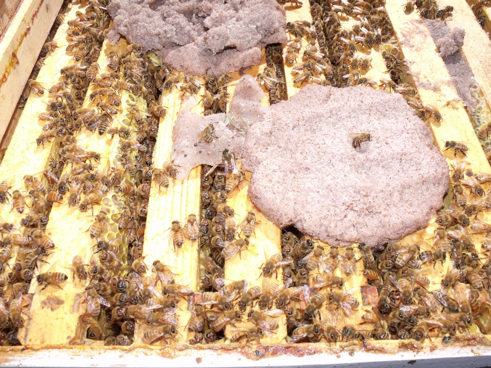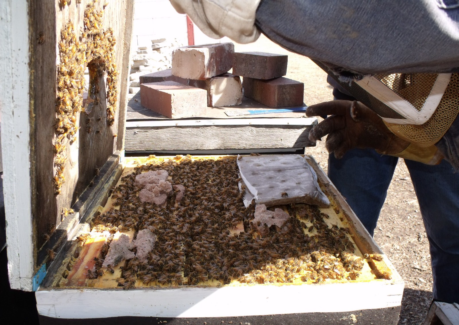 We spent a day painting hives white and I tried my best to free hand the numbers on the hives, not doing such a great job, I must admit. The brush was flimsy, as good of an excuse as any! The grease patties were still in the bee hives and we added pollen patties in each box to give the bees a good boost as they come into the Spring. All the winter tar paper was removed and put into storage for next year.