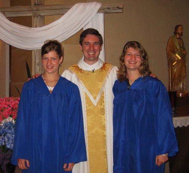 Yesterday our church celebrated a Graduation Mass for our seniors.  There were 5 students from Canby High School and my two homeschooled girls, a fairly large group for out here in rural America.  Fr. Craig did a wonderful homily and it was right on, in my opinion.  I wish I could have written down what he spoke to the very hearts of these young people!   I sure hope the seniors were paying close attention because it was perfect advice that could make all the difference in their lives.   At one point, I had to smile when Mario turned around, in the balcony where we sing, and asked me if it was true what Father had just said!  I assured him that it was true!