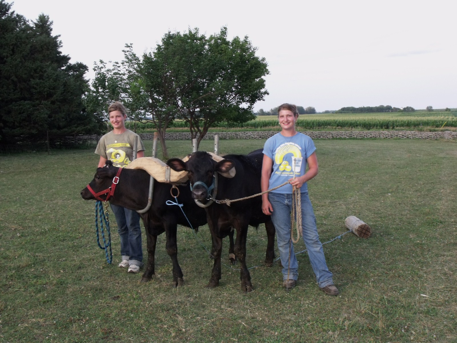 This time they did not fit into their old smaller hand-carved yoke that Fred made.  The twins had to put them into the larger yoke that Fred carved.