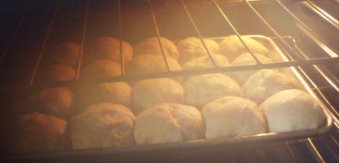Dissolve the yeast in warm water. Add butter to the yeast. When melted, add eggs and honey. Mix well. Blend in the salt and flour. Knead the dough on a floured surface for around 5 minutes. It will be kind of wet but not bad. Use your own method on how to knead it whether you use wet hands, oily hands or a bit of flour. You don’t want this dry though, so the buns will be soft and moist:) Place the dough in a greased bowl, cover and let it rise until doubled in size. Punch down later and form into balls; do not flatten the balls. Place on a well-greased cookie sheet around 3 inches apart. Cover and let rise again for around a half hour or so. You judge! Preheat oven to 400 degrees and then bake for 12 to 15 minutes depending on your oven. Mine is propane. Remove and cool on a rack when they are a golden brown.