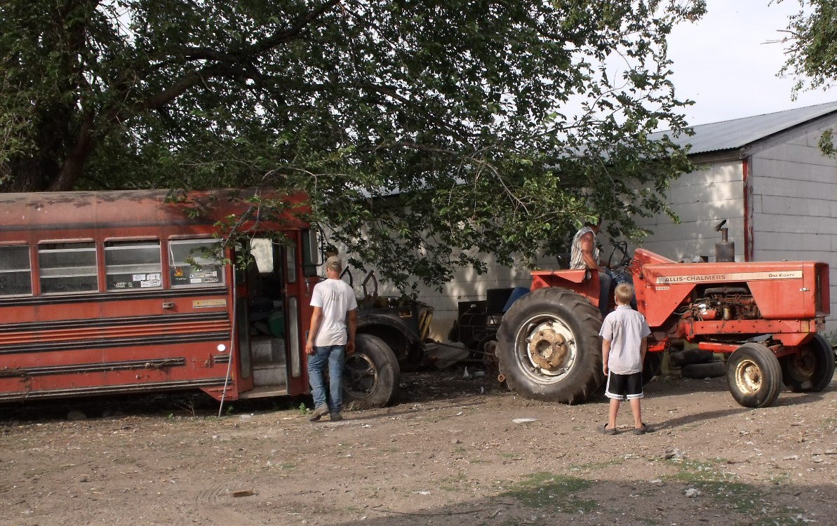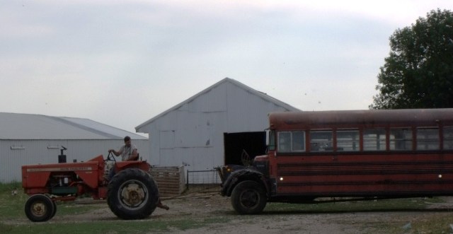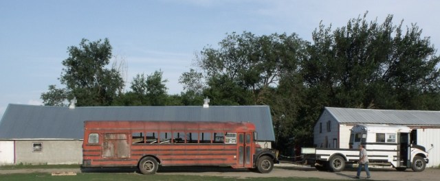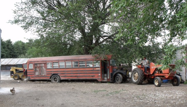 I love the picture of the bus towing the chicken house bus. Did you drive it all the way to town that way?