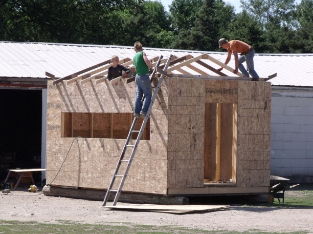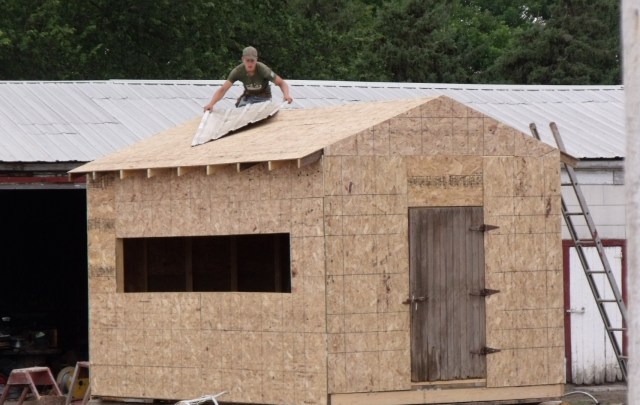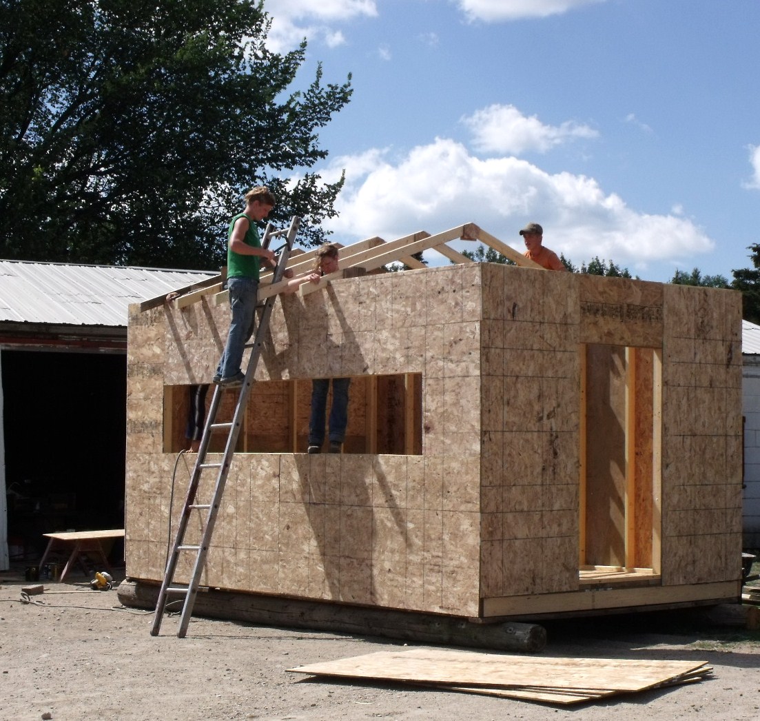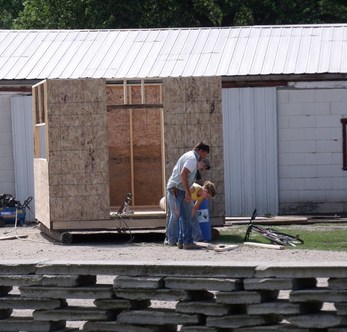 What a great job they did! We just did the same thing with left over lumber. Ours is 10 x 16 feet. We divided it on the inside, in half and made the other half for garden tools and the feed. We only have 30 some chickens though not 99. lol Kids are learning a lot! Good job, mama and dad!