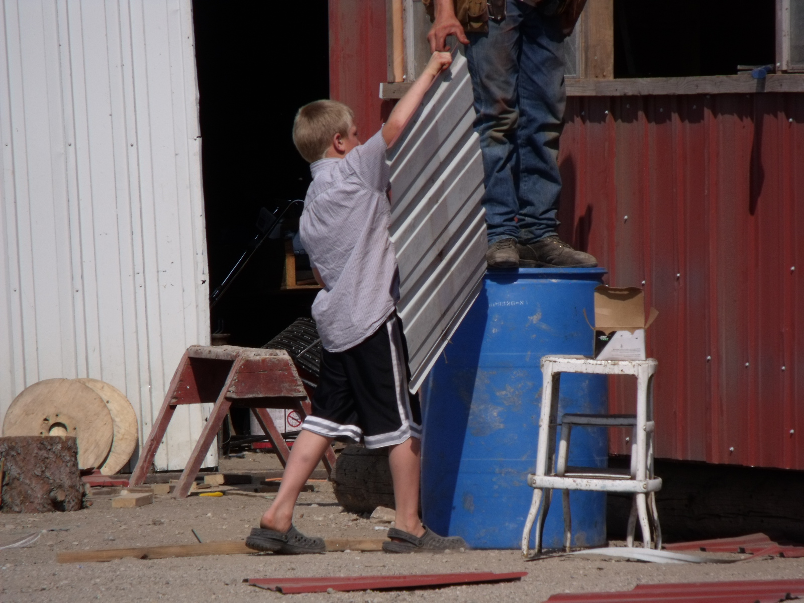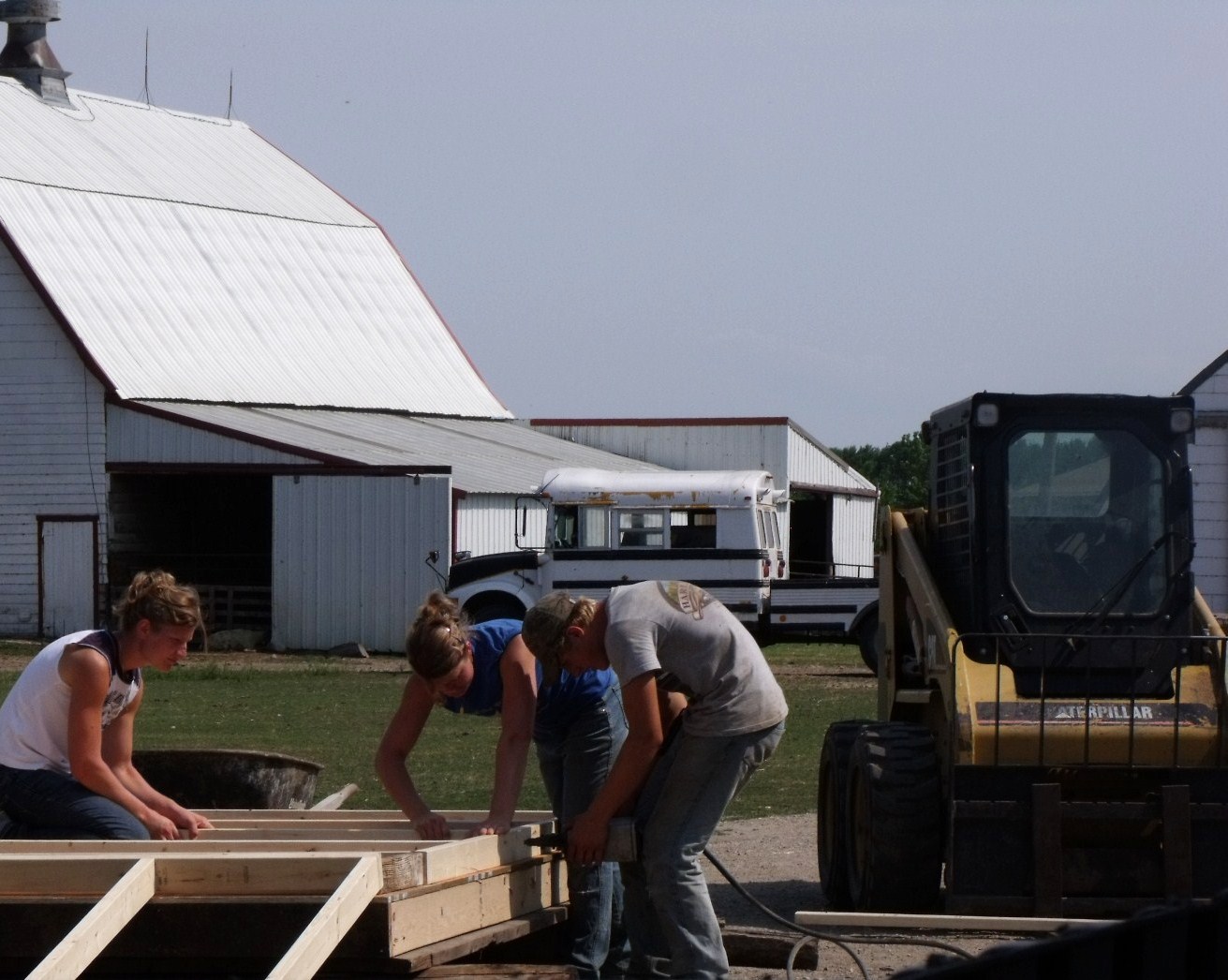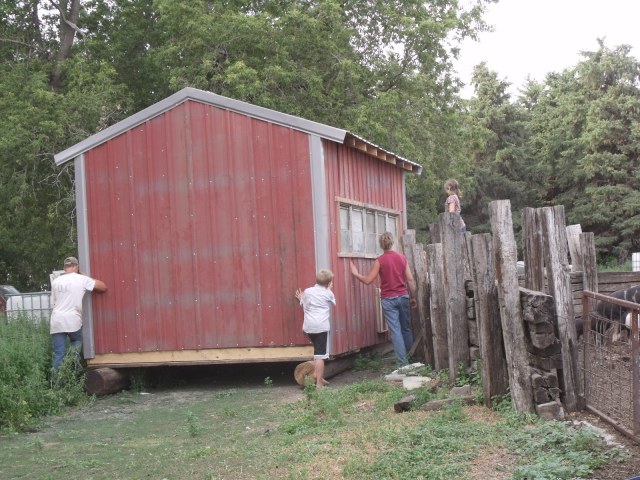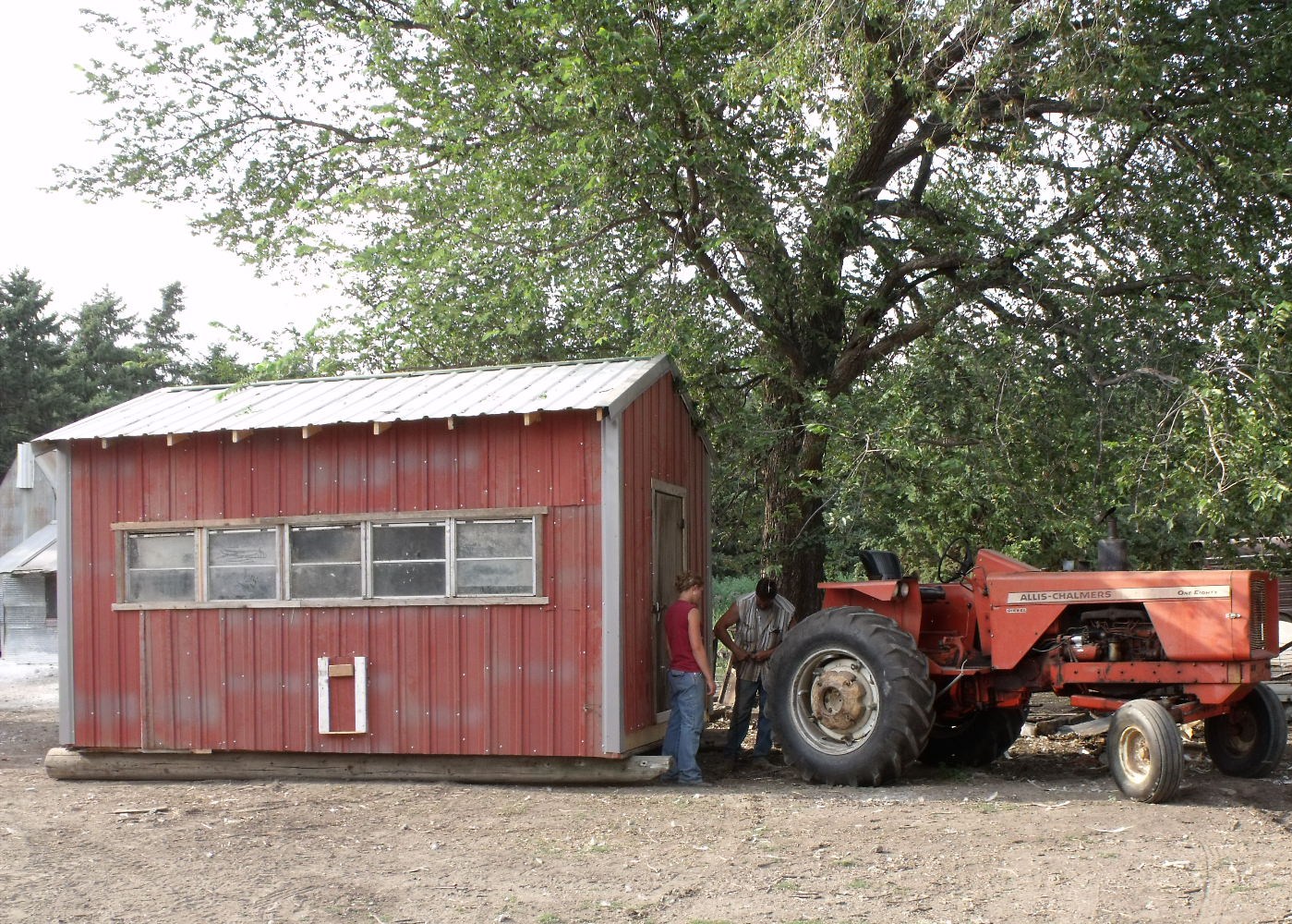 Out with the old and in with the new! In this case, we got rid of the old red chicken house/bus which while it did the job, was not very nice to look at. The kids pretty much built this chicken house with the guidance and assistance of Fred in between his day job. I hated to see this new chicken house get messed up; it is nice enough to be a cabin and roomy to boot. It now houses 99 mostly laying hens with plenty of room to spare. See the photos below of the process of building this chicken house. Fred and I hauled in the old bus and sold it for the steel. It felt sad as I watched the huge magnet pick up the bus like a kids toy and proceed to demolish it.