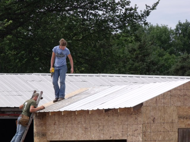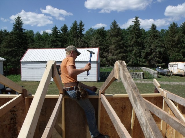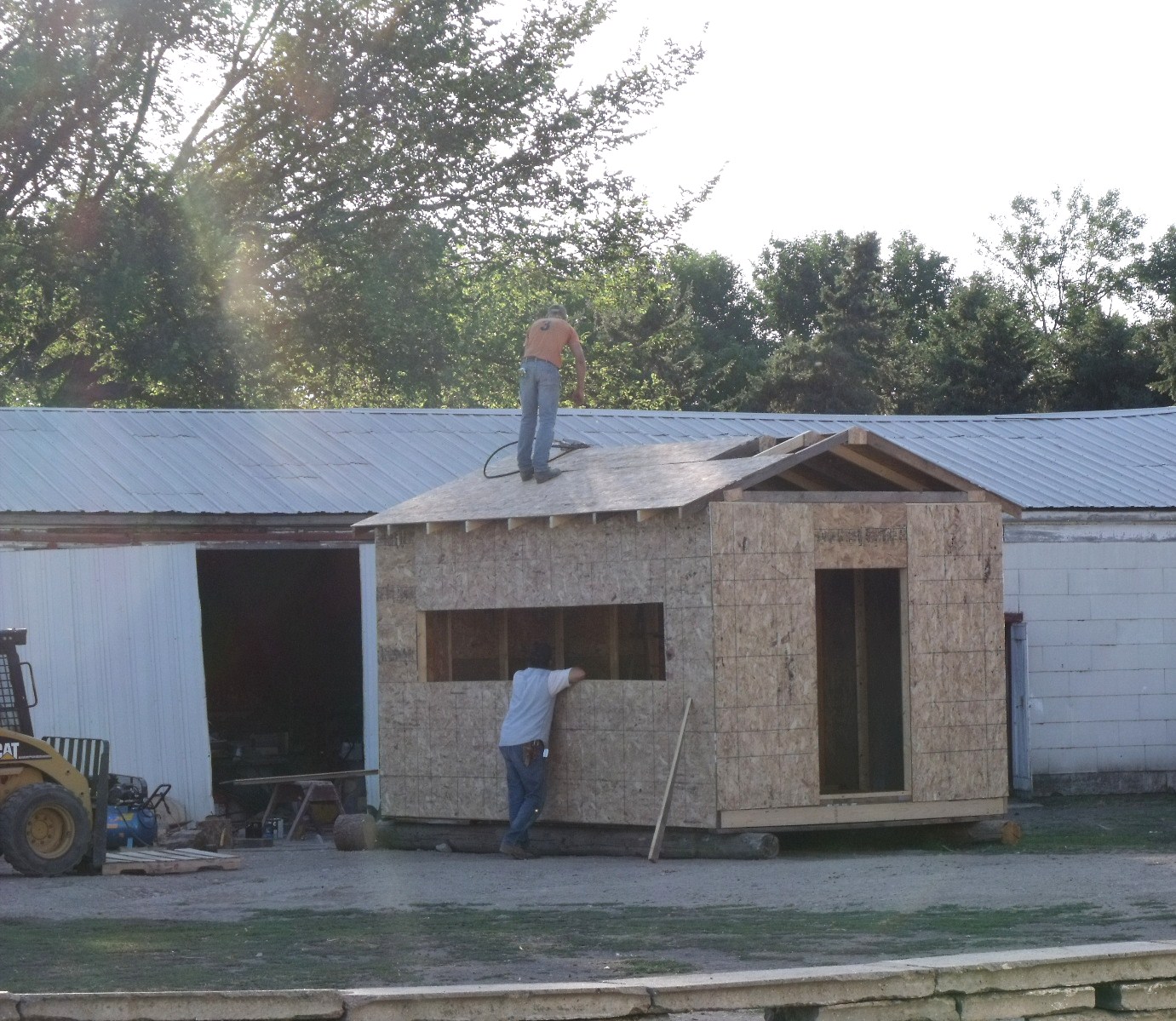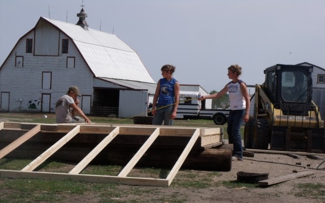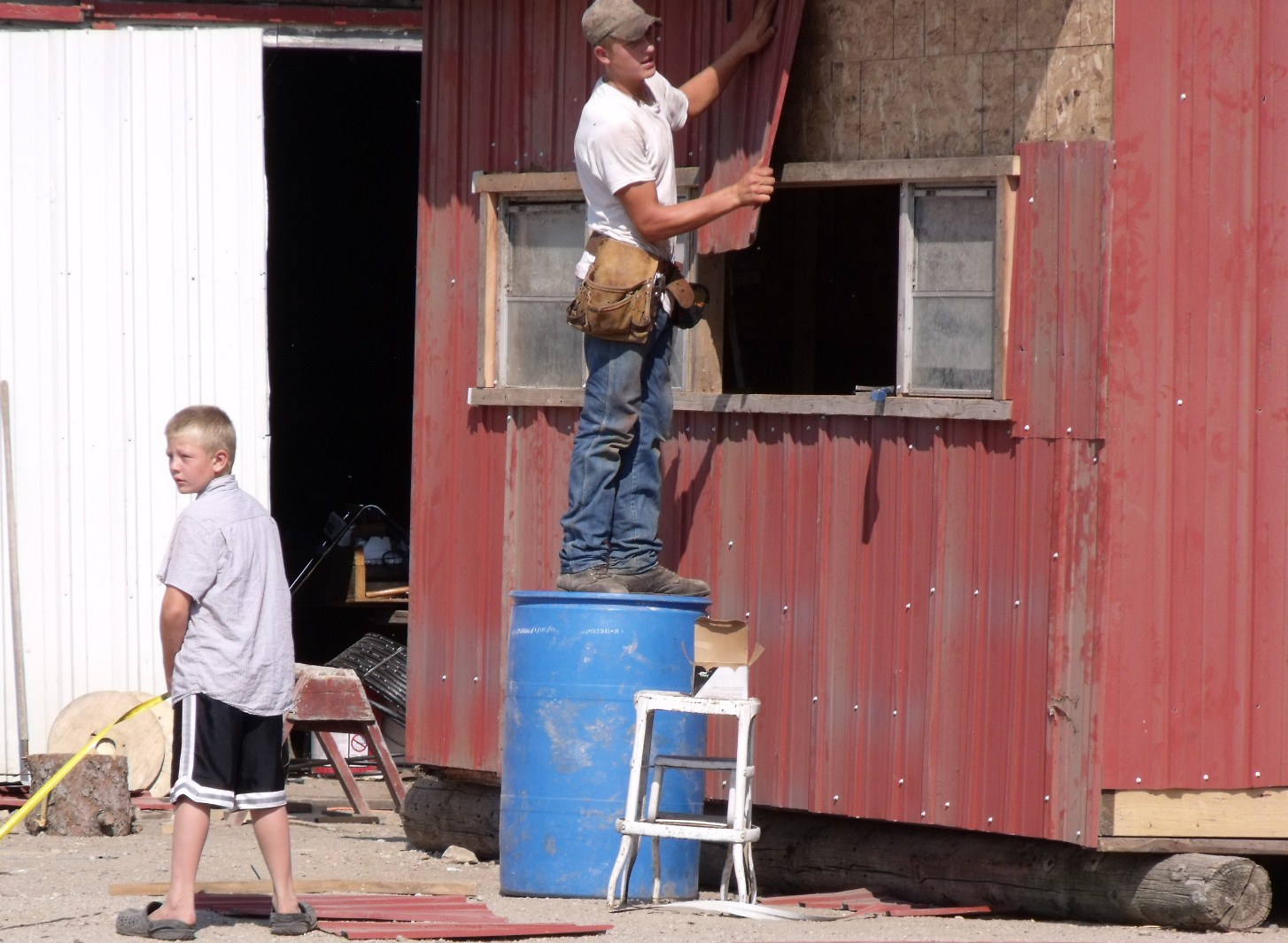 Out with the old and in with the new! In this case, we got rid of the old red chicken house/bus which while it did the job, was not very nice to look at. The kids pretty much built this chicken house with the guidance and assistance of Fred in between his day job. I hated to see this new chicken house get messed up; it is nice enough to be a cabin and roomy to boot. It now houses 99 mostly laying hens with plenty of room to spare. See the photos below of the process of building this chicken house. Fred and I hauled in the old bus and sold it for the steel. It felt sad as I watched the huge magnet pick up the bus like a kids toy and proceed to demolish it.