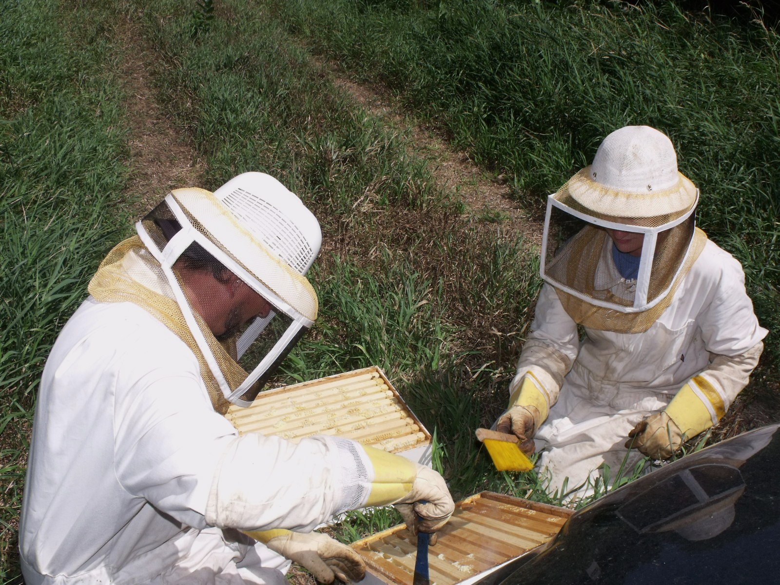 Unfortunately, we had a skunk that was eating bees from one of our hives.  Caleb trapped it and now we are waiting to see if there are more.  We have harvested so far, 480 pounds of honey and it is delicious!  We’ll be taking more supers off soon.  The new electric uncapping knife worked terrific.   It really made things go much faster and again Fred was happy:)