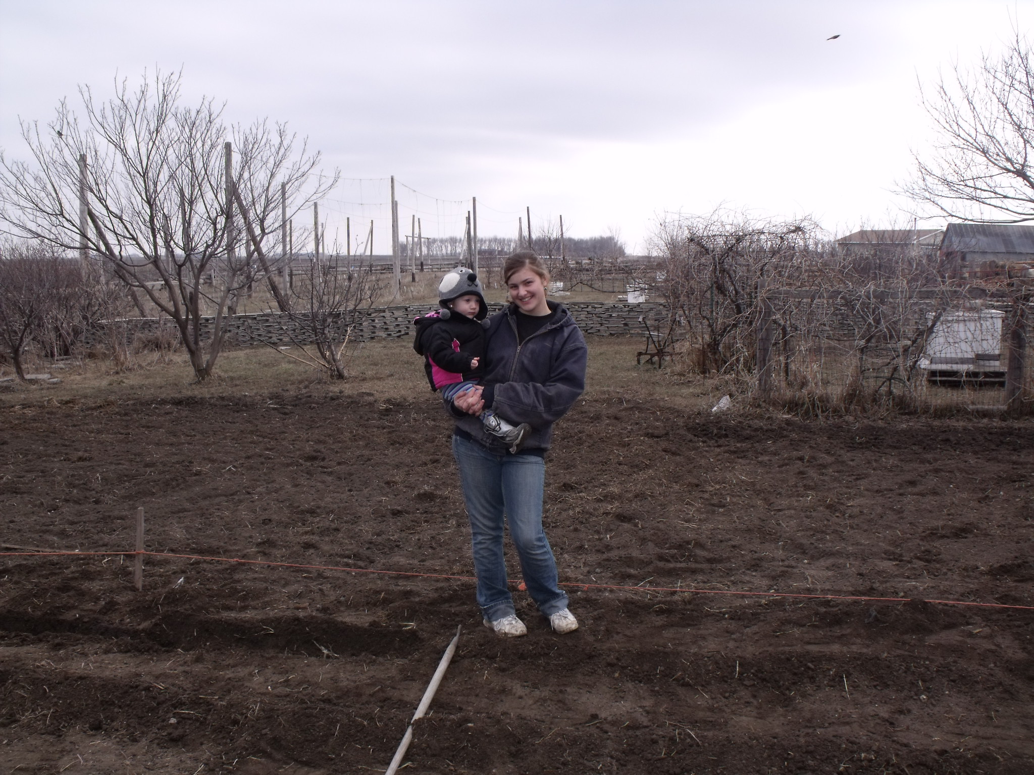 Kallie Jo snuck down while her parents were planting their taters. She helped knock over posts, bale twine and pull up the seed:) What fun!
