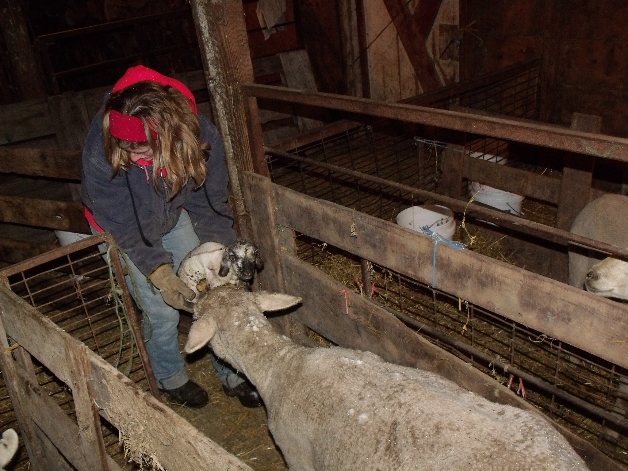 This lamb was born in the snow while we worked and later was brought in followed by her anxious mother who then birthed it’s twin.