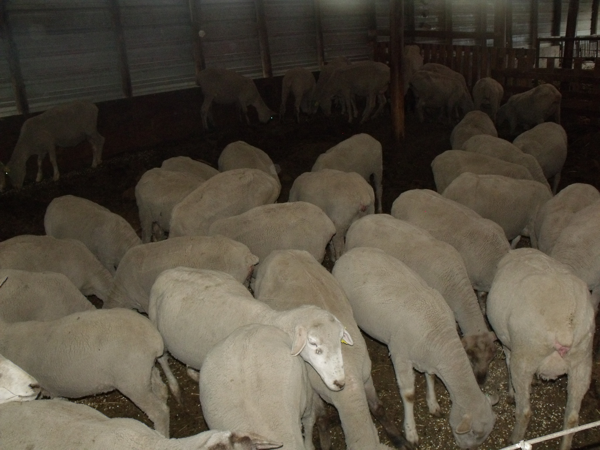 Bred ewes are fed in the barn sometimes when we want to check them over to see how close they are to birth.