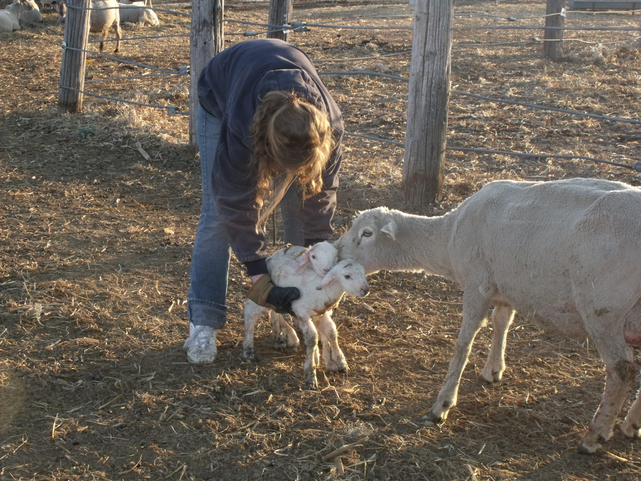 Feeding the triplets of a ewe with poor mothering skills. They now know how to drink on their own and she accidentally laid on one of them, leaving only two lambs.