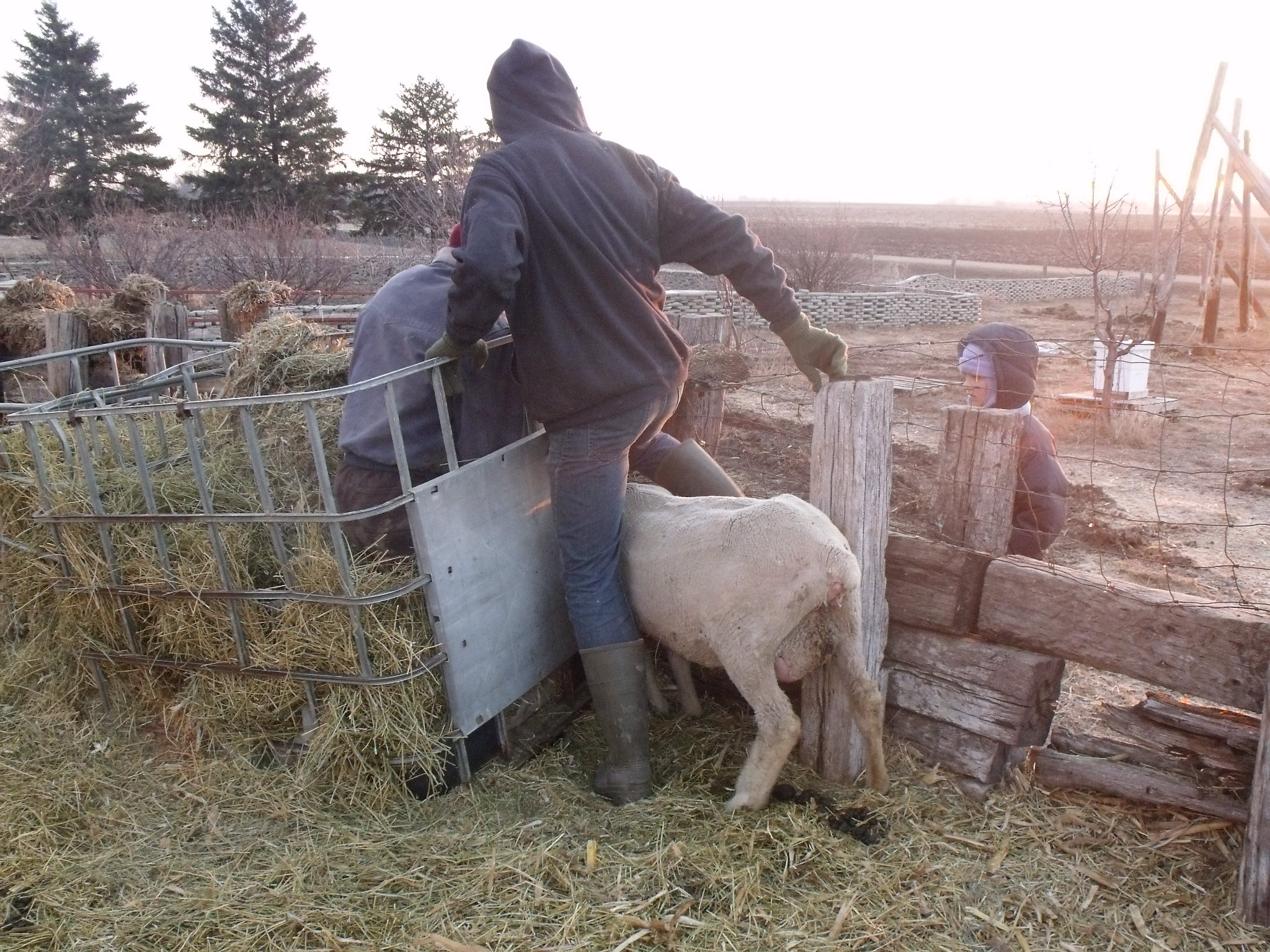 This ewe, having just given birth, must be moved into the barn. It was a lot colder than the photo looks!