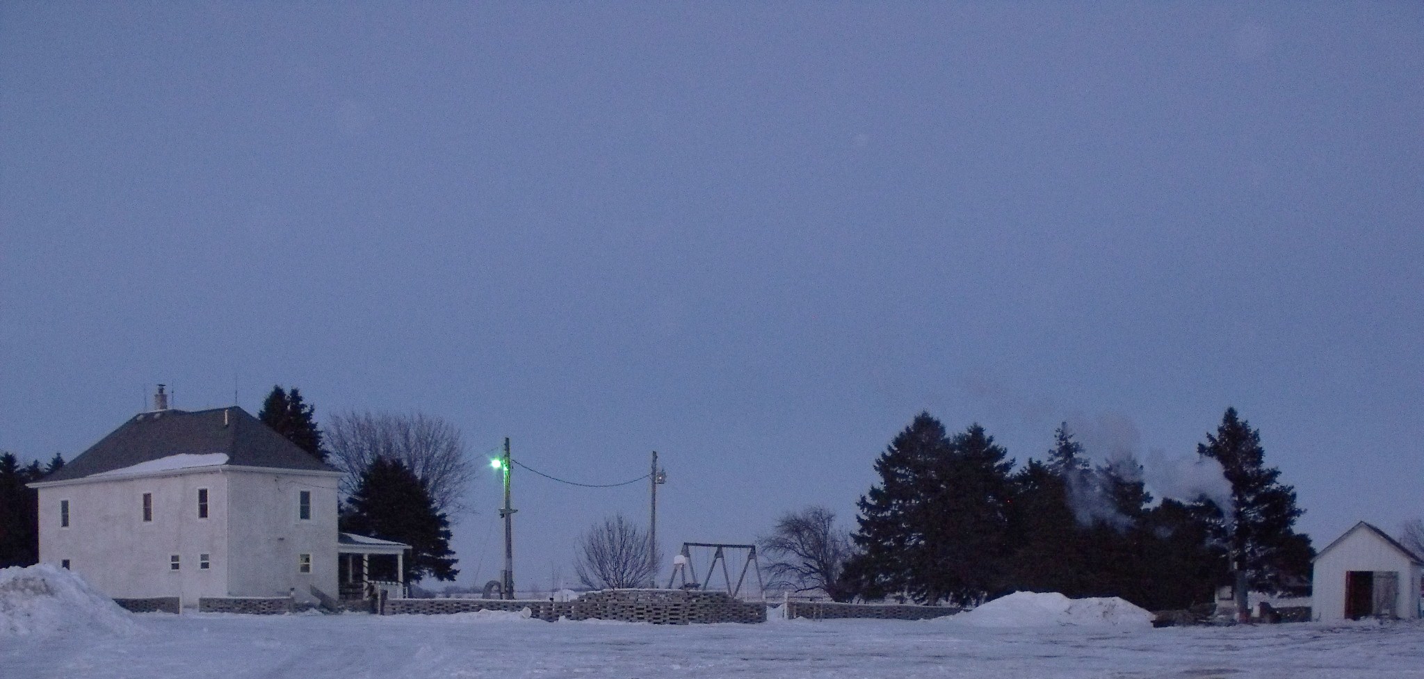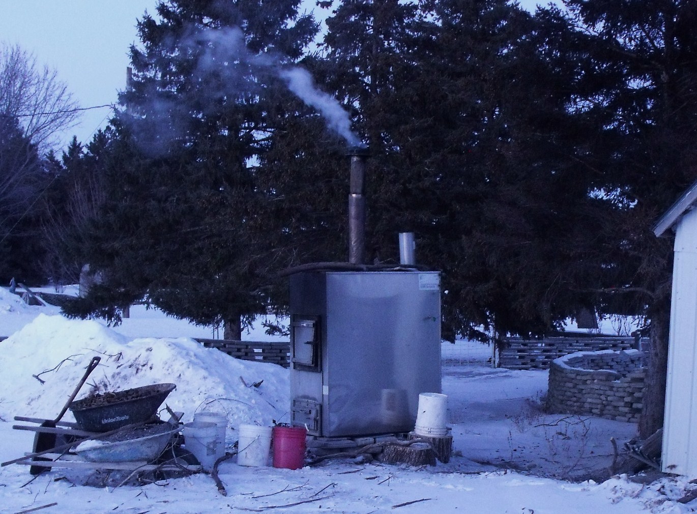 Not only does burning the manure work, we knew it would burn, but a couple of pails burn for quite a few hours.  We have no shortage of wood but it is nice to stretch what we have as this winter has shaped up to be colder than normal.  But, there are many who are short of wood this year due to the extreme cold.  You can see how large the house is and if you look closely at the photo you can see the smoke from the outdoor stove on the right by the wood shed.  We smile about this because for years and years we have had horses here and as the saying goes for horses, they mainly are “hay burners”!  Meaning, they are mostly recreational!