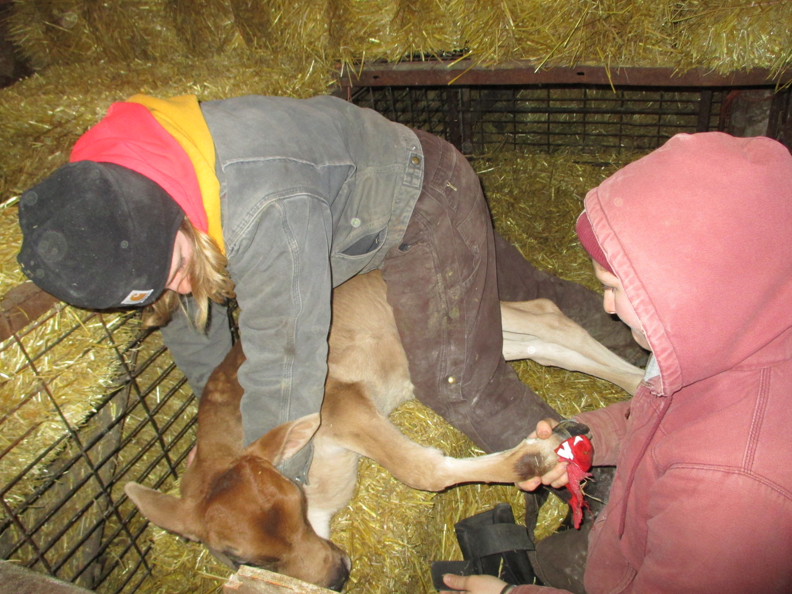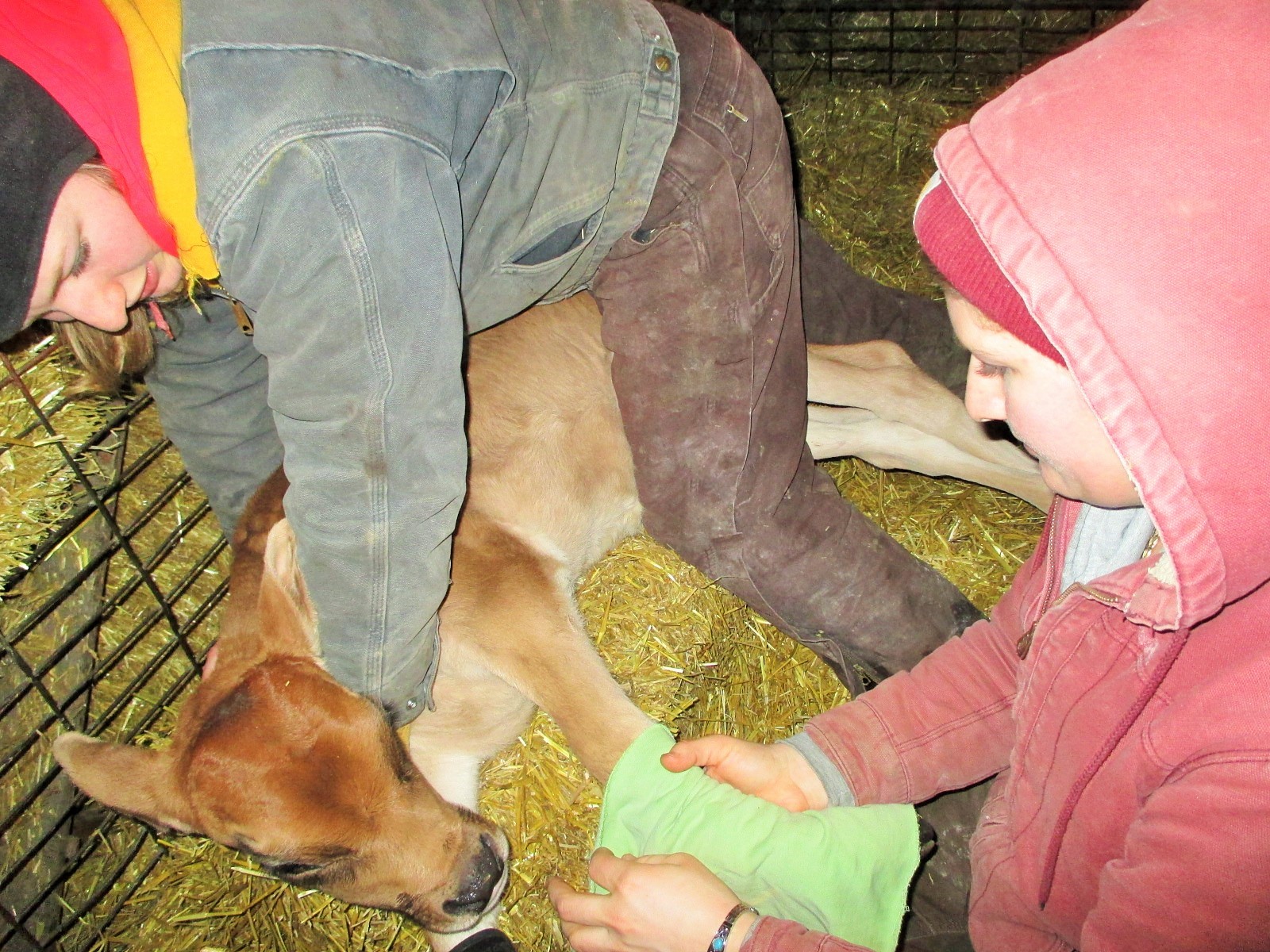 I can’t help thinking how good it is for the kids to have to tend to the weak animals. Honestly, this kind of work can only be a labor of love. Patience and kindness are a necessity on the farm. She will most likely be a butcher calf eventually and the kids all know this.