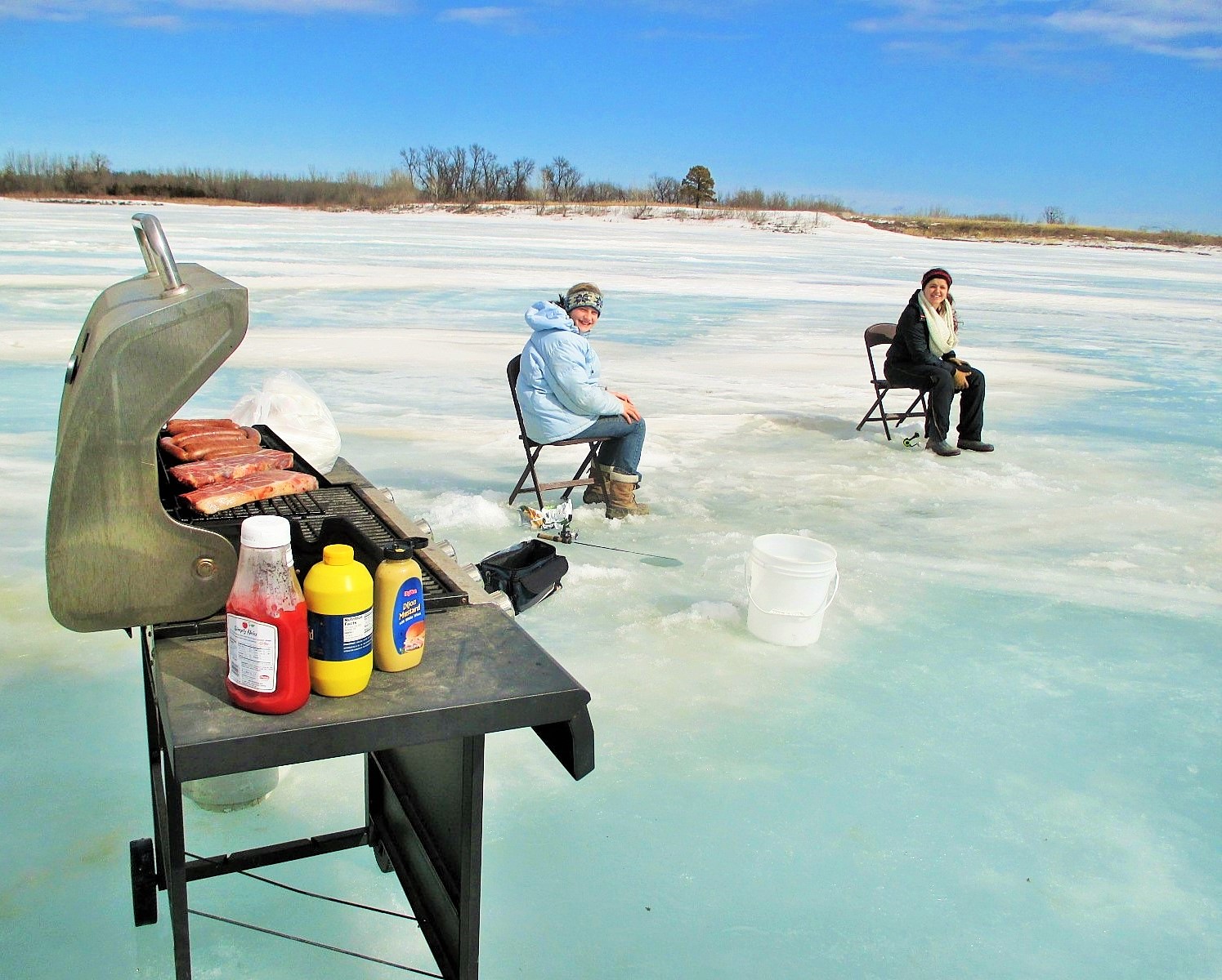 Fire up the grill, we’re getting hungry now! This grilling on an icy lake was new to us but it sure smelled just like a picnic on a summer day. The joy of modern conveniences; the smell of summer filled the frozen winter air.