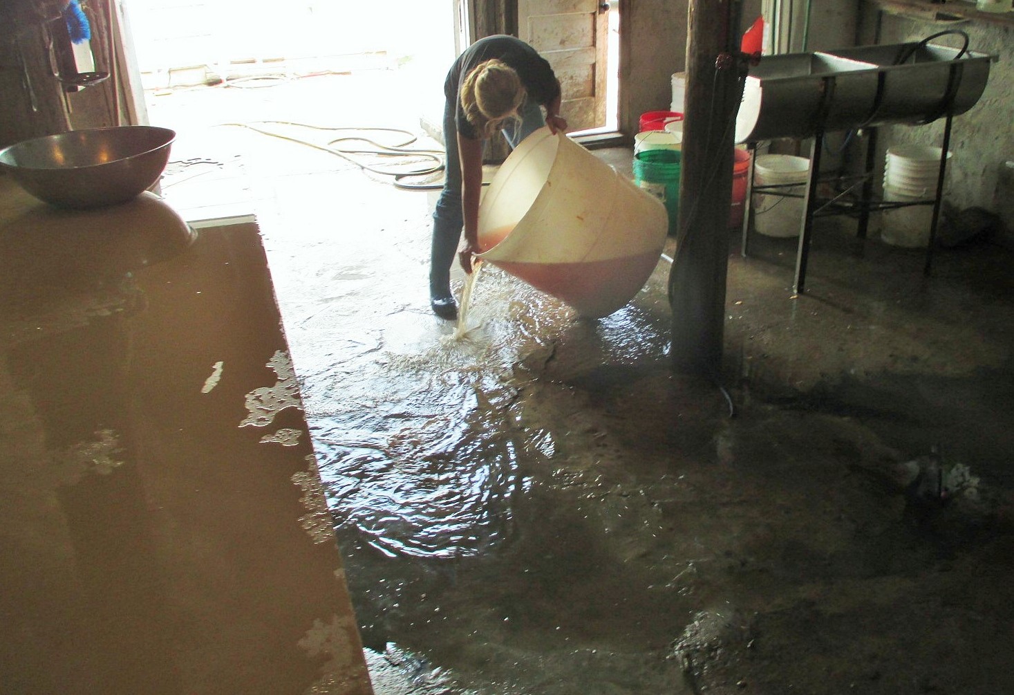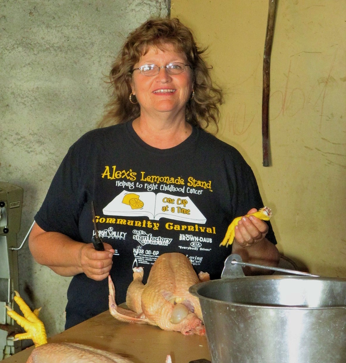 Fred built this chicken butchering hot water dipper from an old water heater and it worked great! Marisa did the dipping.