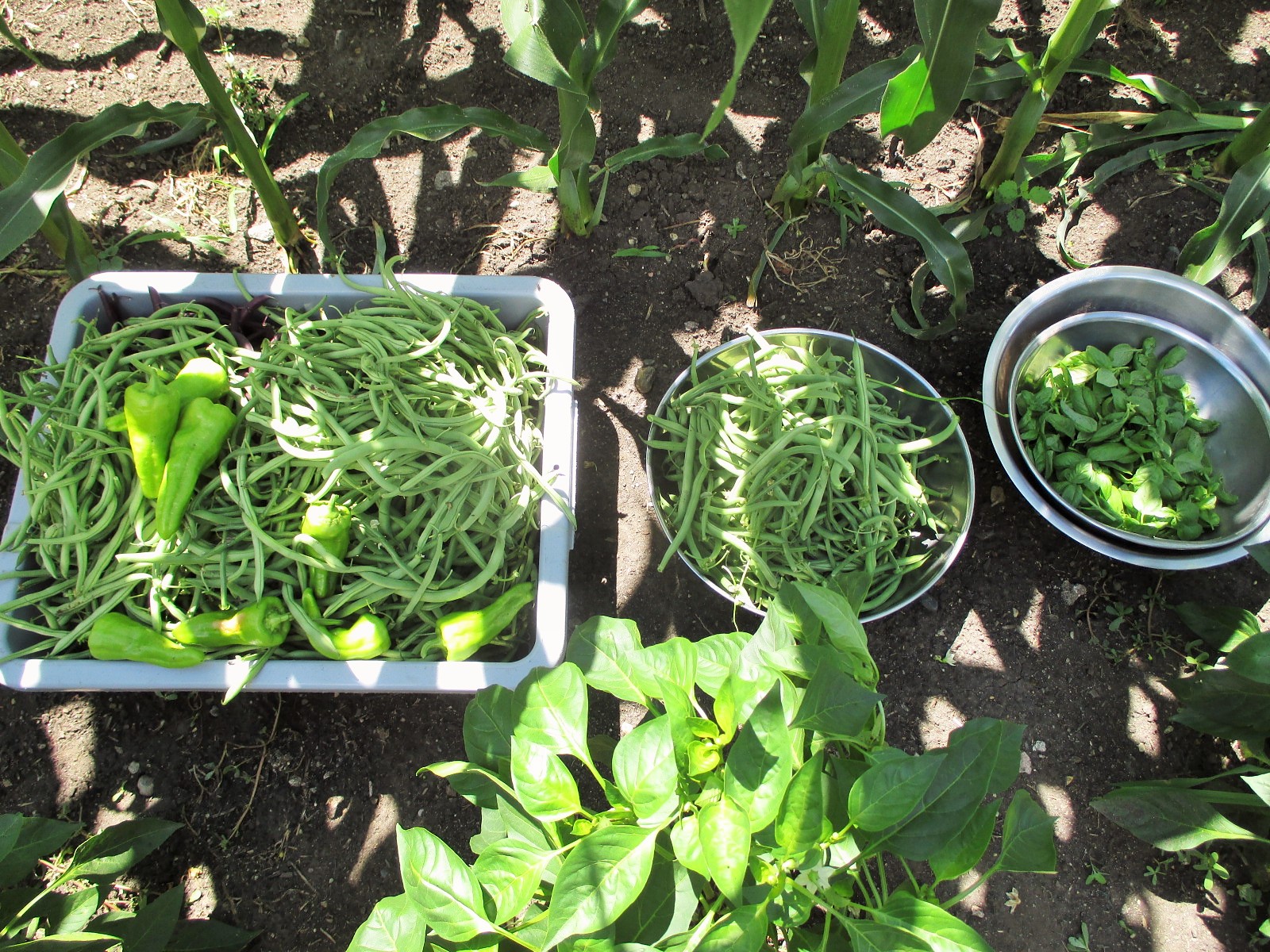 I fried and froze 18 eggplants for winter Eggplant Parmesan!  It’s my favorite food in the world.  There are many more still growing in the garden.  The bees make a big difference here and have pollinated like crazy.  We actually froze two butcher shop lugs full of peppers!!!  There are 30 quarts of green beans put up so far and they slowly produce over and over again.