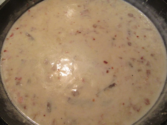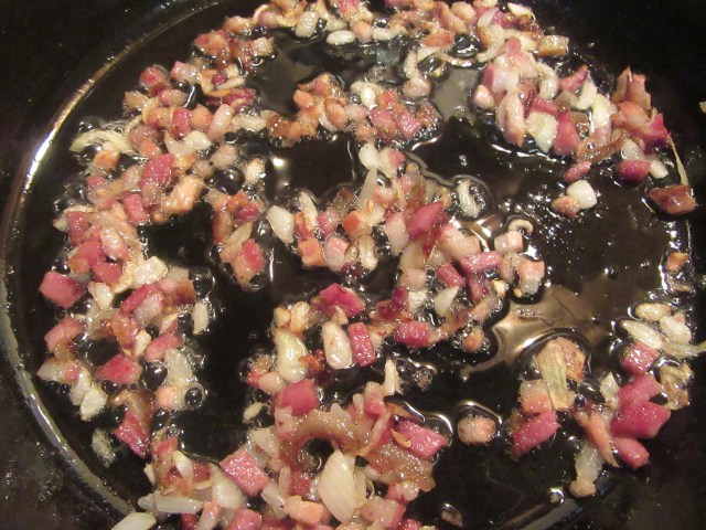Our own Ham and Bacon Roll chopped and browned with sweet onions. After these are browned……see below.
