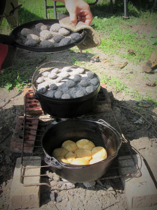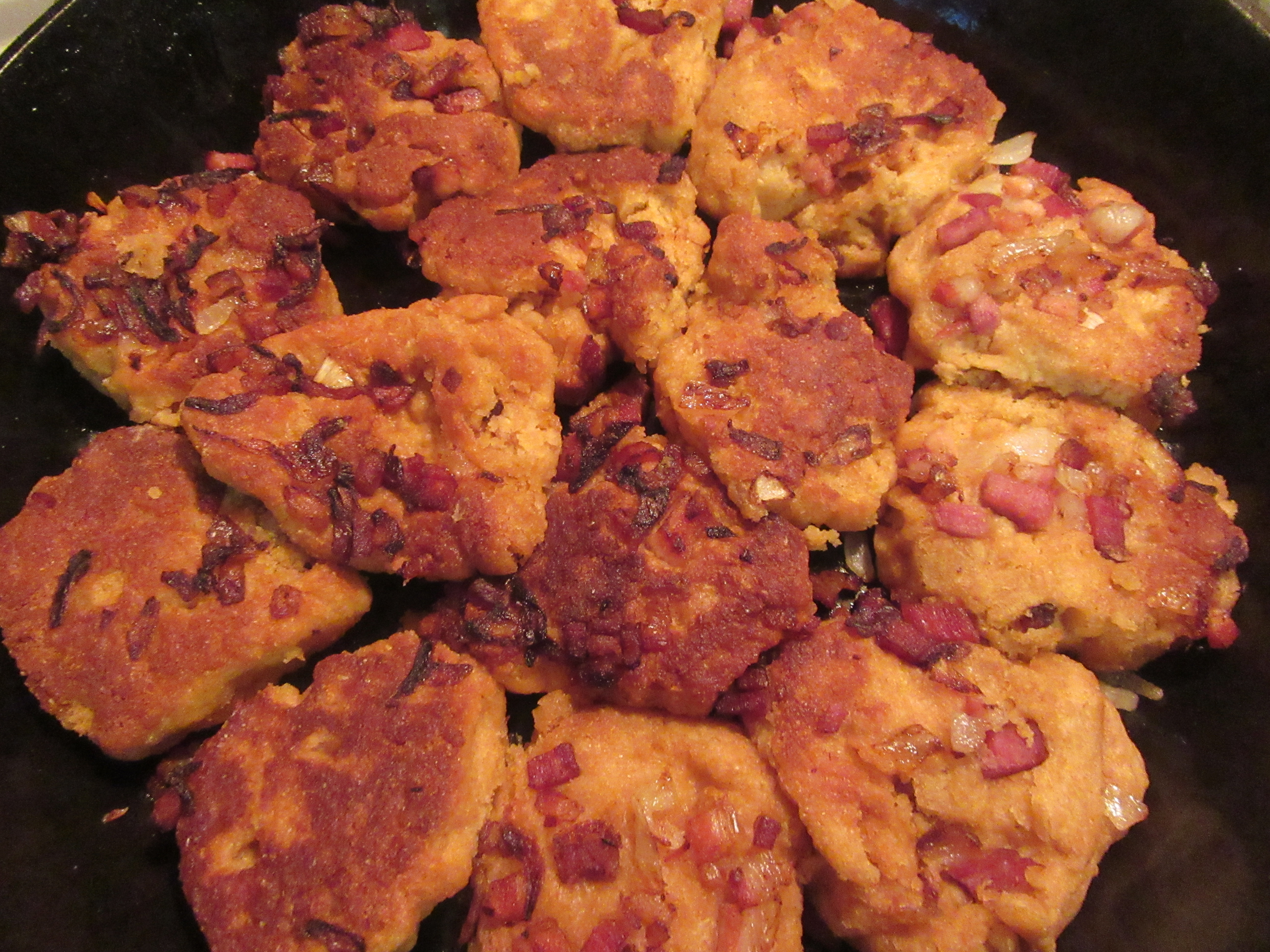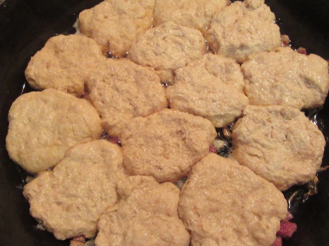 These are a copy cat recipe of Pillsbury Grand Biscuits. I put these raw on top of the bacon and onions until brown.  Flip them over and cook the other side.   Photo Below.