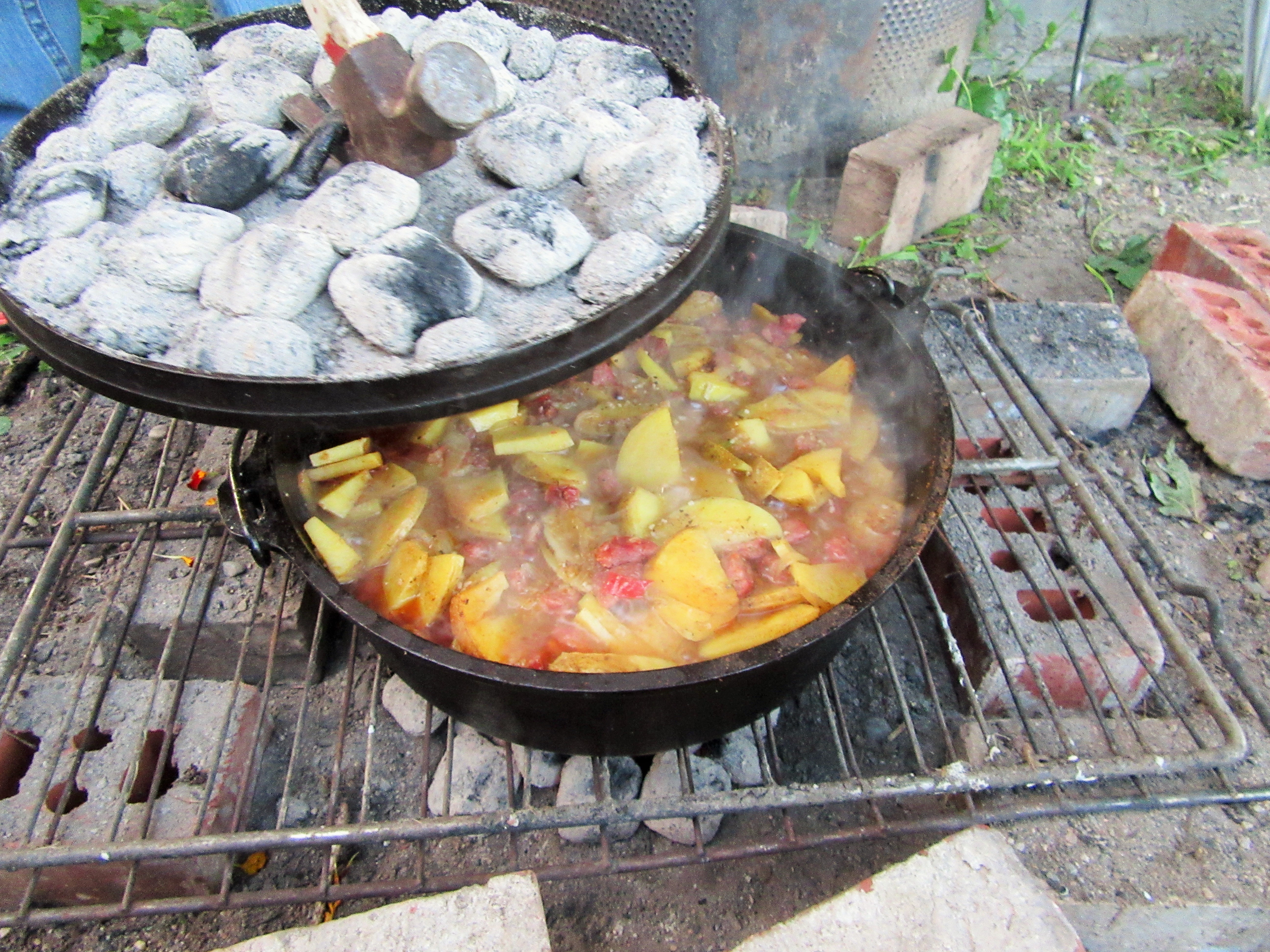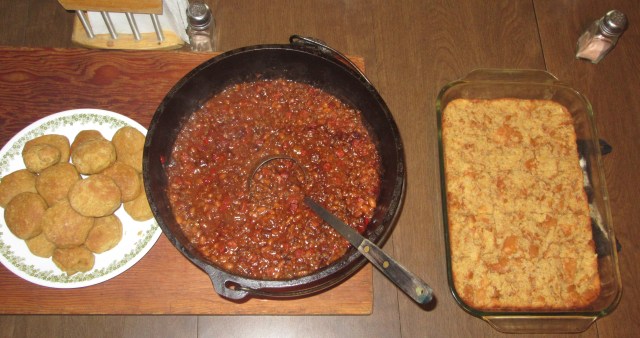 Here’s the meal which also included Bread Pudding with Whiskey Sauce.  Silvana baked that in the oven.  This is another one of Kent Rollins recipes.