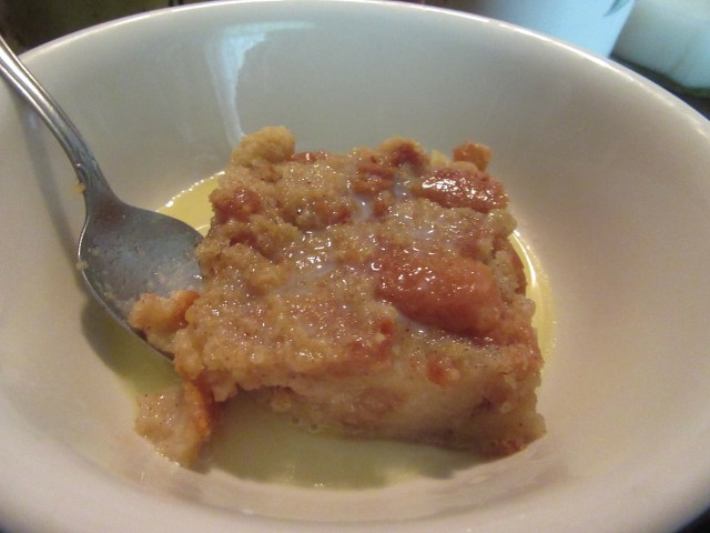 Whiskey sauce bread pudding close up. I don’t think I’ve ever eaten bread pudding in my life but I have to admit this was delicious.