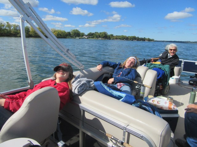All smiles after a wonderful day on the lake! That’s a lot of fish to clean!!!! Alan and the girls did that job while I helped Lynda prepare supper.