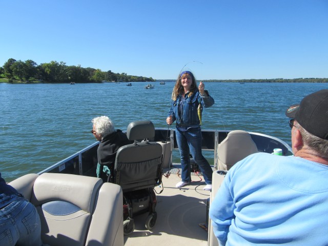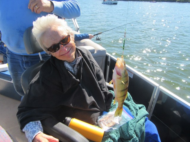 It was slow In the beginning for Bella, Silvana and our hostess, Lynda Ferber! Lynda caught the most fish using her one working arm and her teeth! She is amazing and always as cheerful as you can see in this photo.