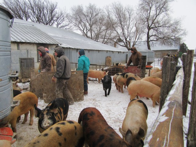 The weather jumped from severe cold to a mild 40 degrees for several days and then dropped very quickly again.  That is hard on the livestock.   The good news is that the cold does not affect the flavor of these Organic Prairie porkers!