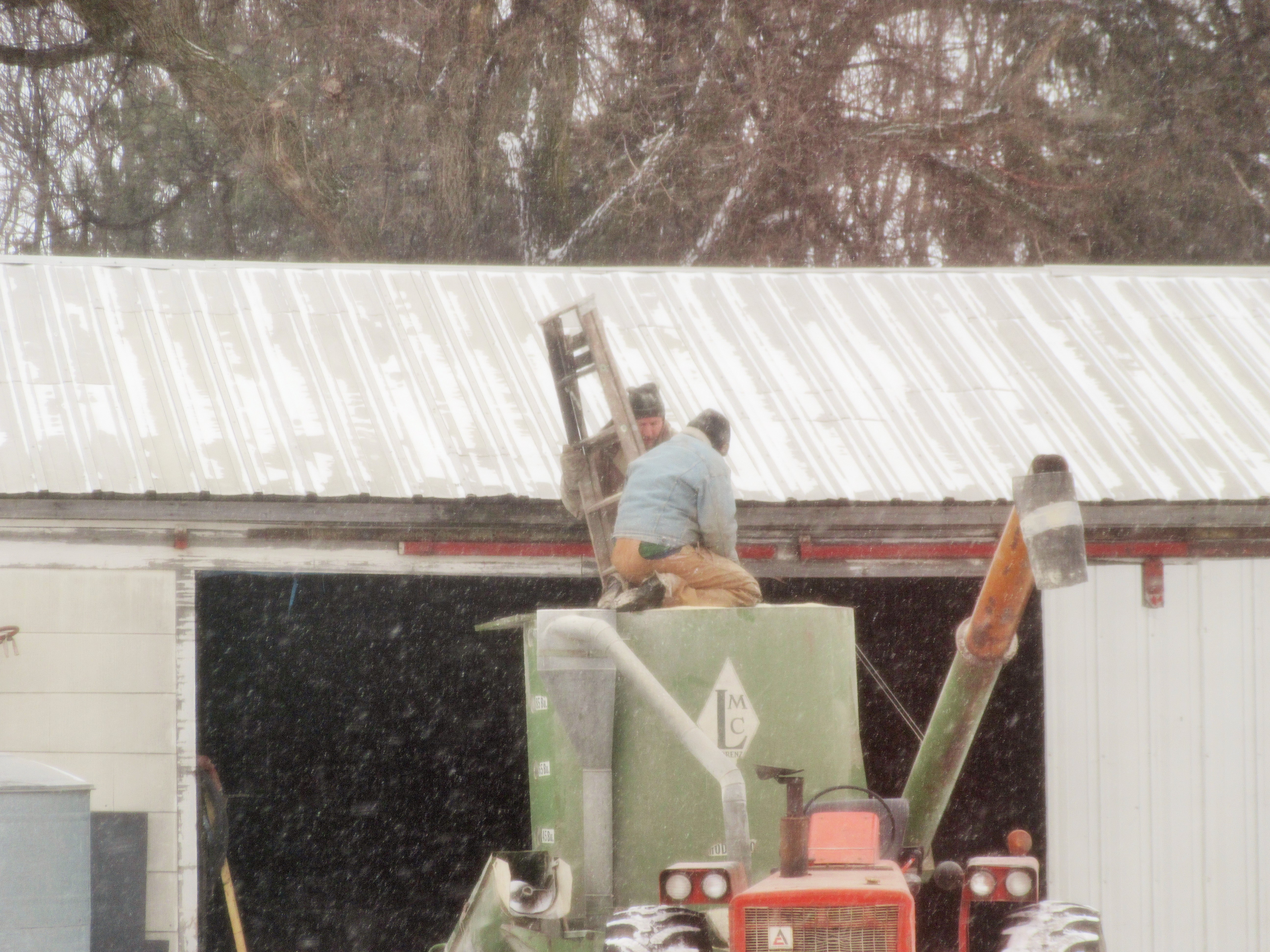 Fred and Mario don’t like working in this bitter cold either but if the grinder doesn’t work properly the pigs may go hungry!