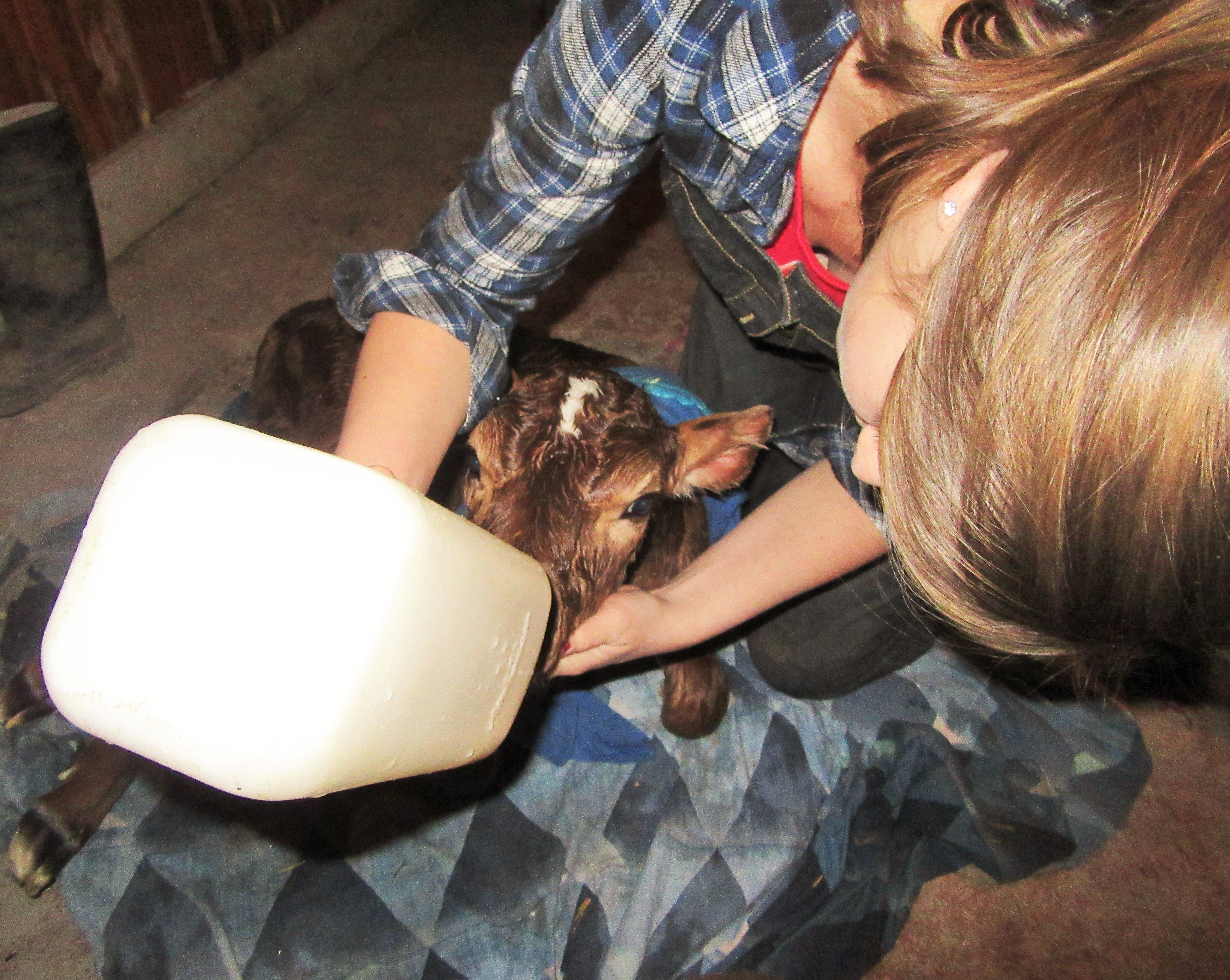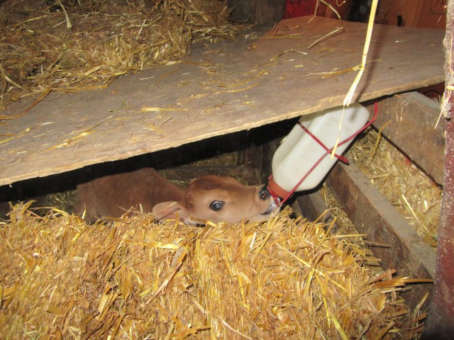 Warm milk served to a very sweet calf. I know he really appreciates it!