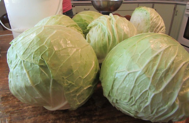 Beautiful cabbages were just bagged yesterday as Sauer Kraut. Yum!