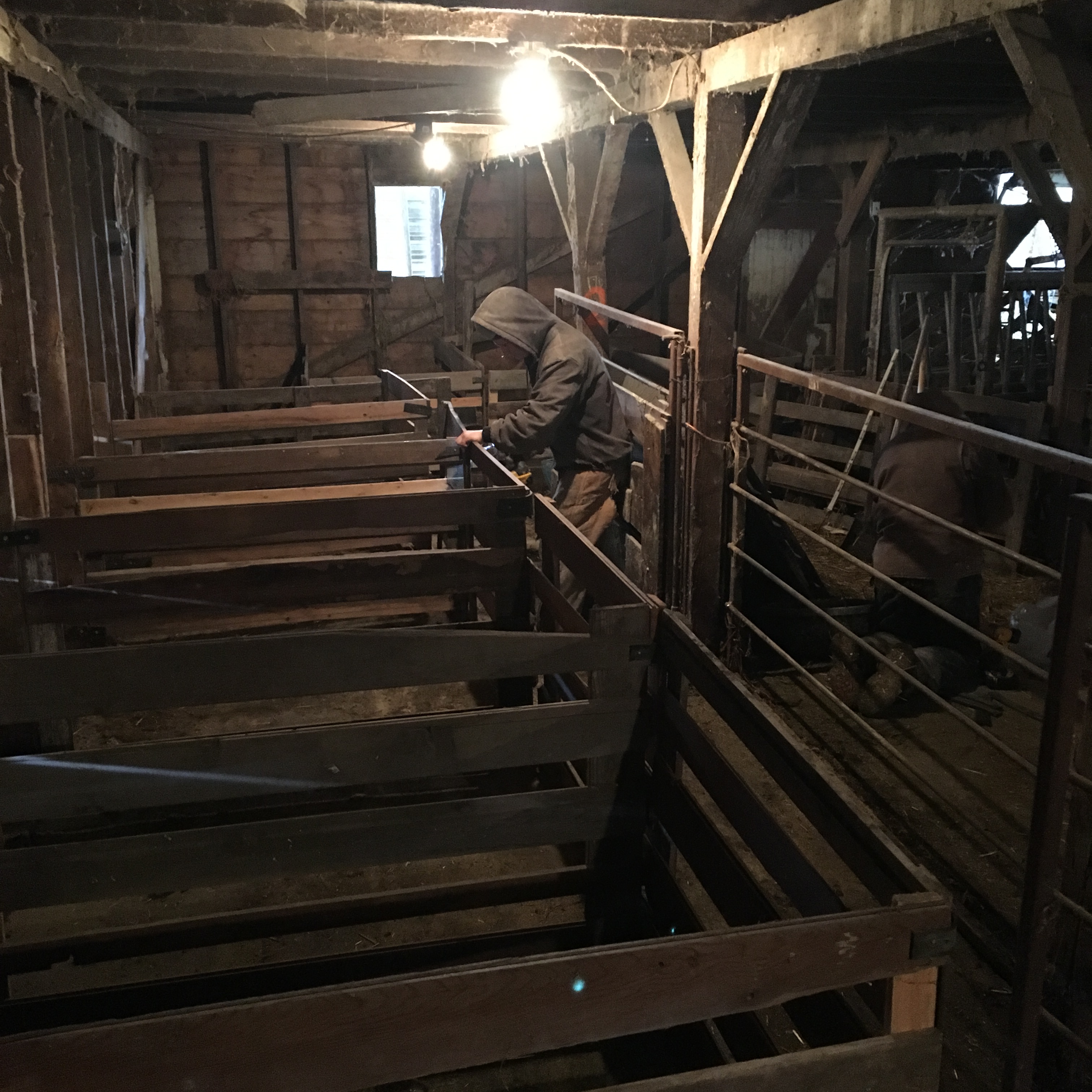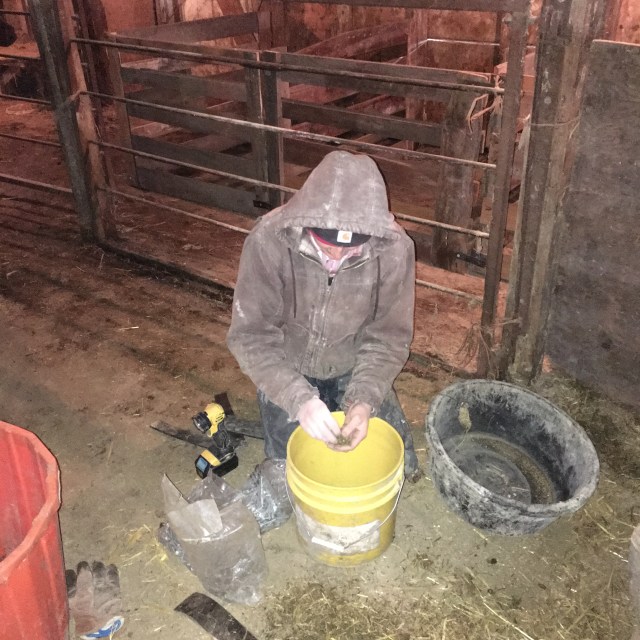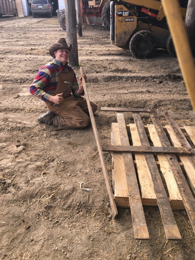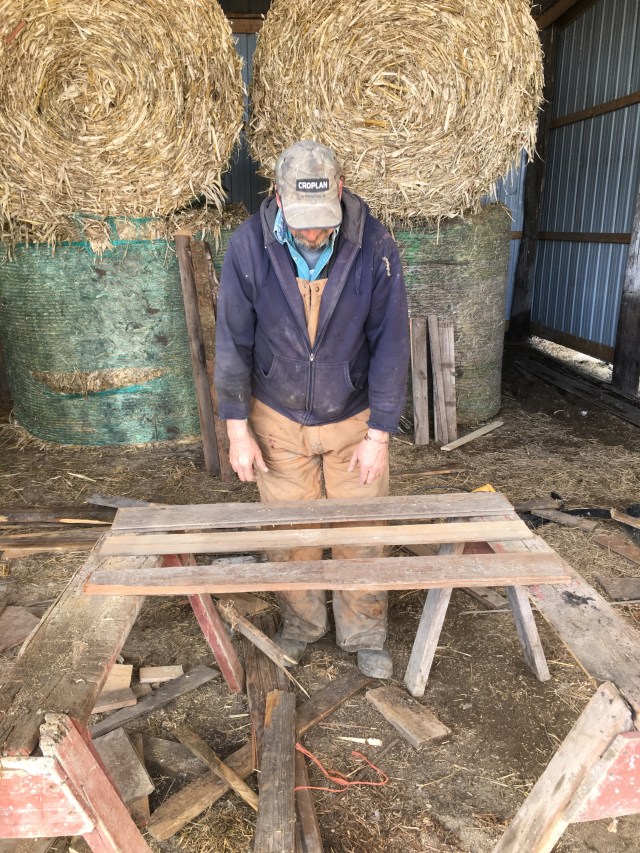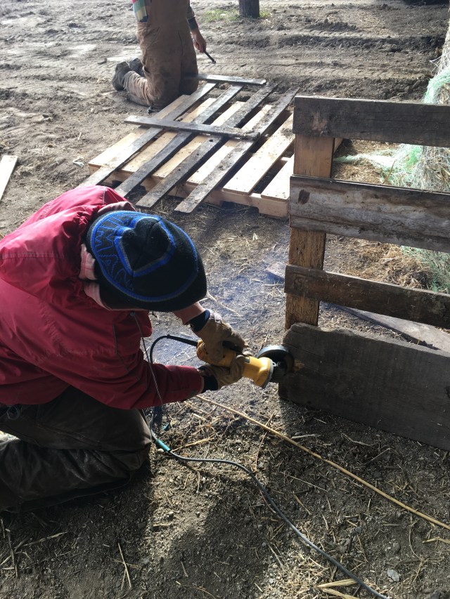 Fred building lamb pens out of used lumber as usual!