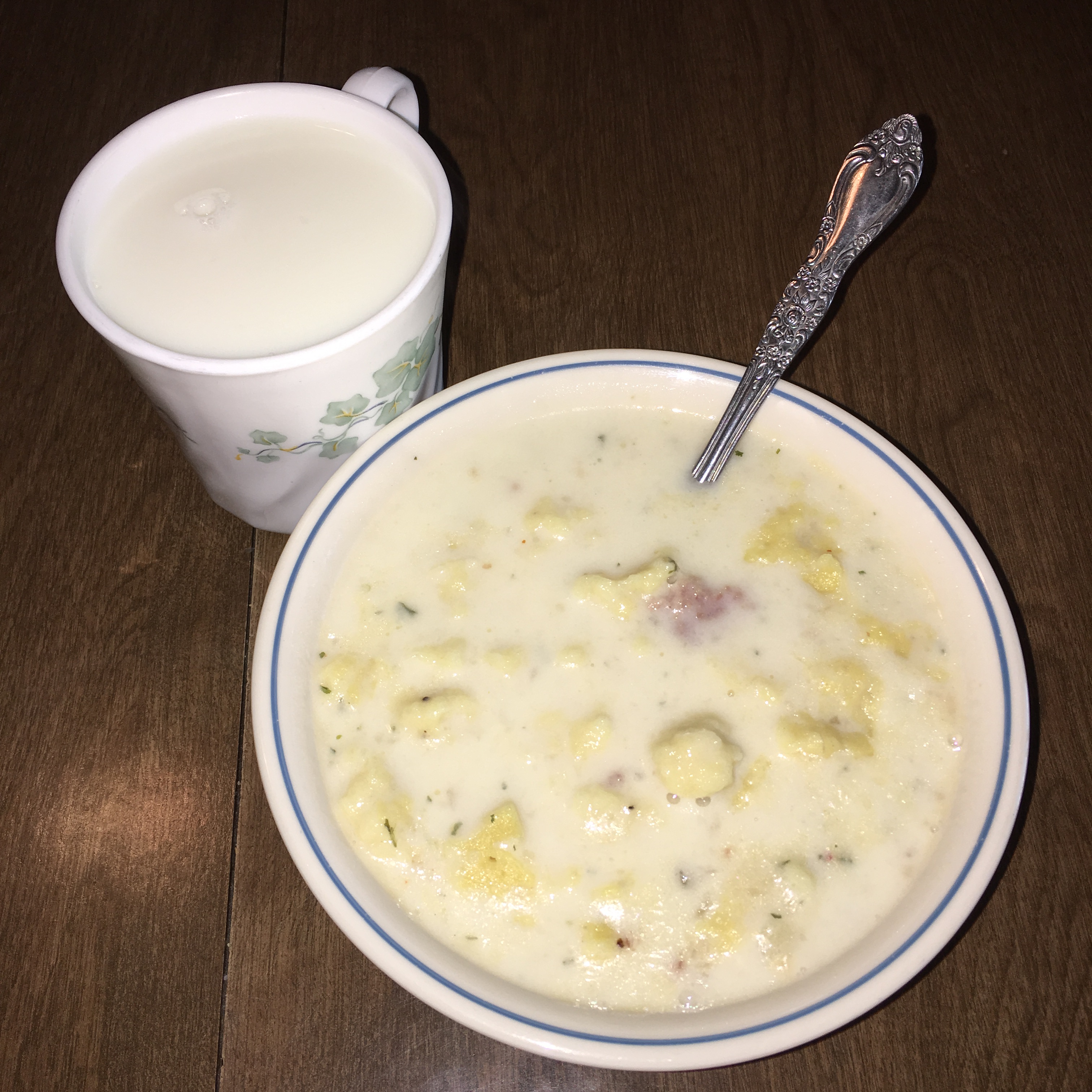 Potato and dumplings soup to warm the cold bodies.