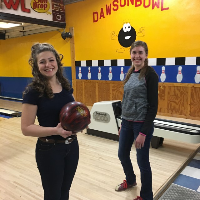 Mario, cousin Maria and Bella bowling.