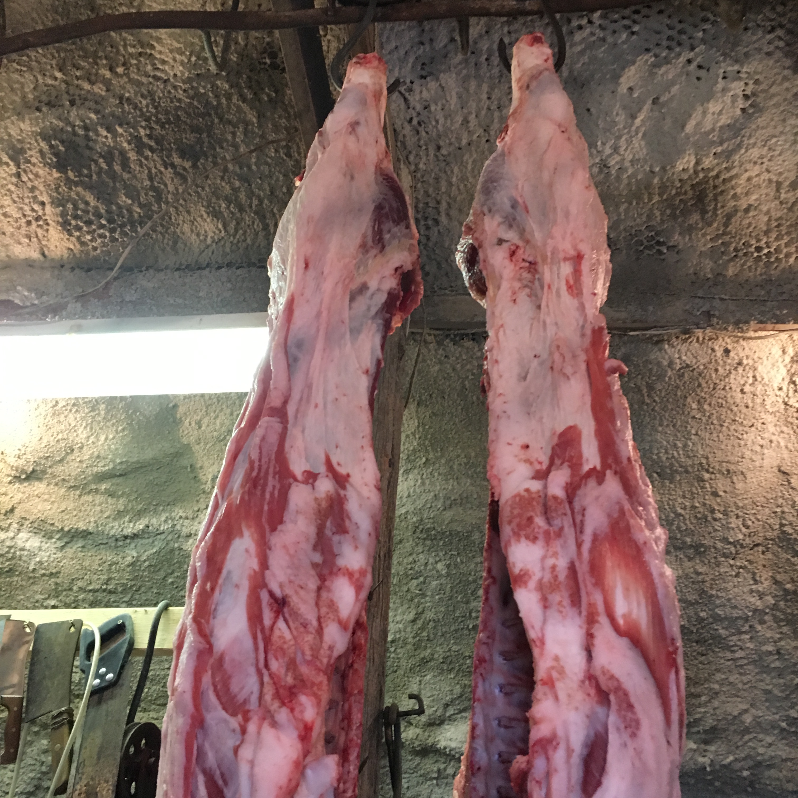 Weighing a hog on our new scale.