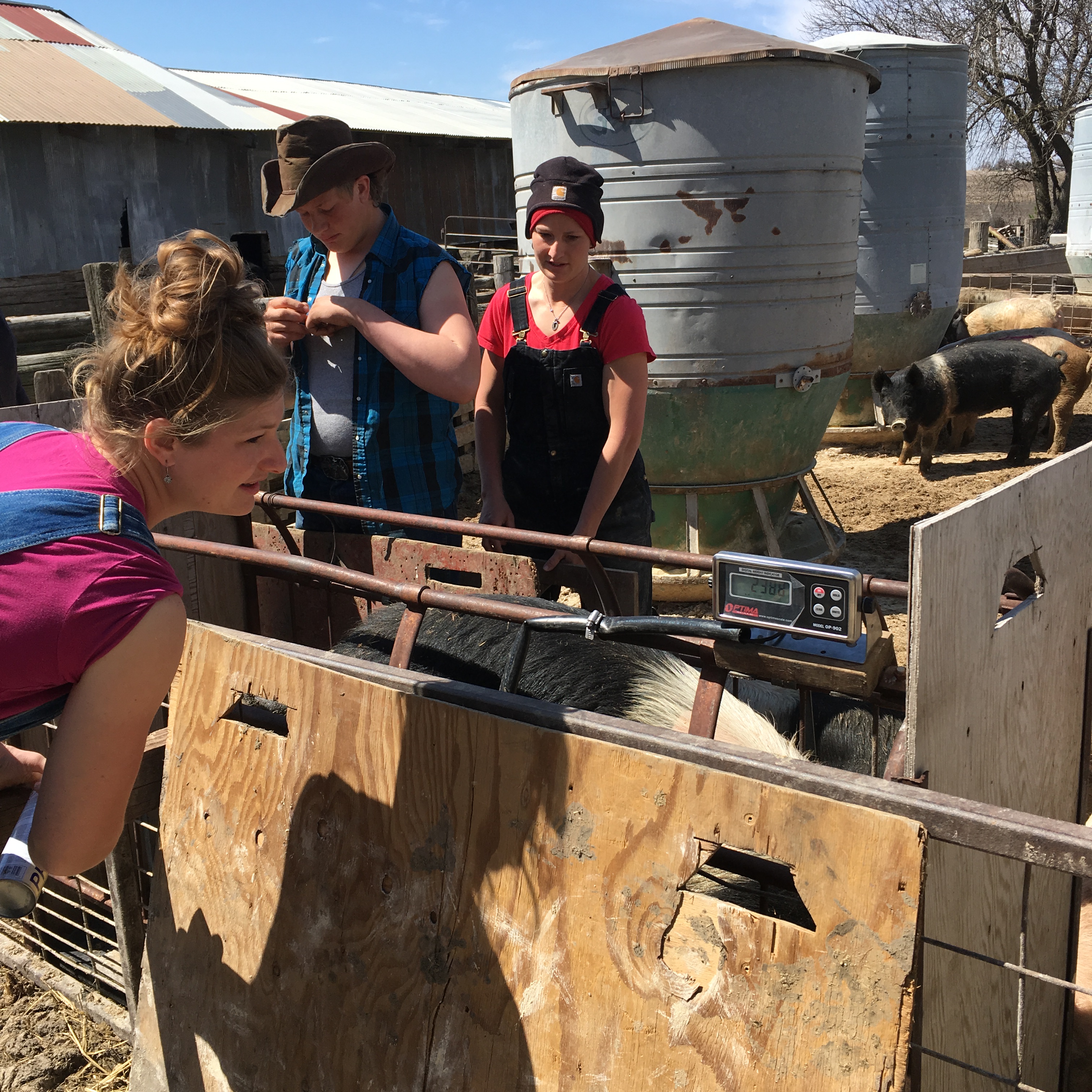 Trying out the new hog scale! It works well.