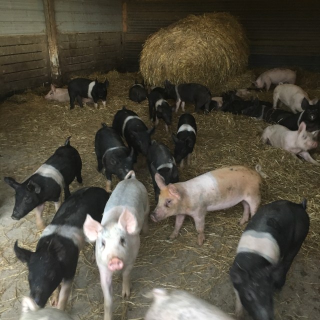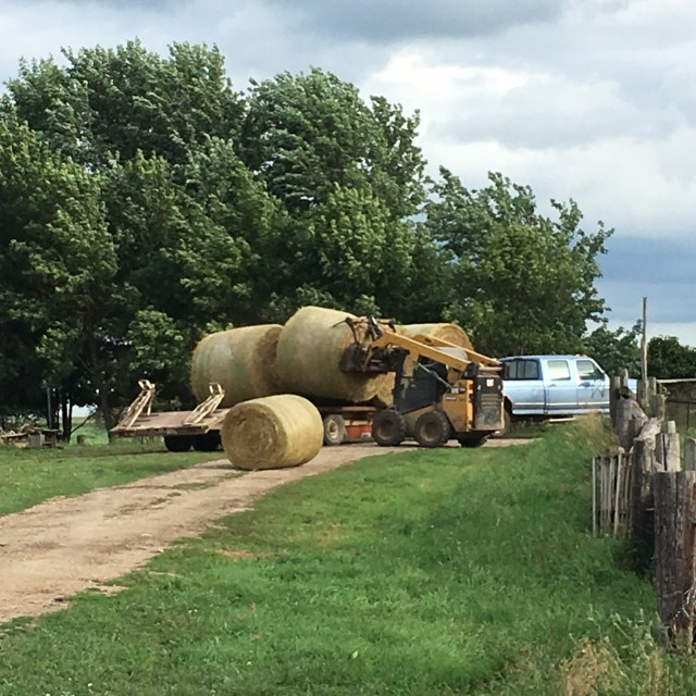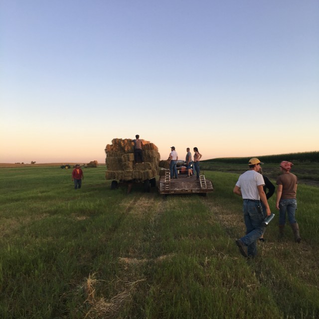 Many hands made light work. Picking up straw bales from Carmens farm.