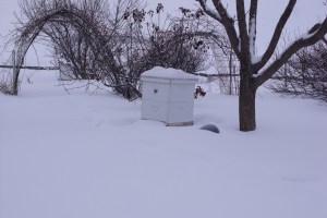 Living on the land in Minnesota during the winter months is a challenge.   Especially when it comes to doing chores.  Our family gets up at the crack of dawn or earlier to get the milking done, feed the sheep, calves, cattle, geese, ducks, rabbits, turkeys, hogs, and chickens.  There is also a large sled load of dried wood to haul in to heat our  farm home.   The last chore before breakfast is checking the bees.  Since you can’t open the hive, you have to place your ear against the hive and listen carefully.  Hopefully a buzzing sound will be heard.  The beautiful sound is that of the bees shaking their wings to keep warm.  It’s hard to believe that even in this 6 degree weather anything so tiny and fragile could survive.