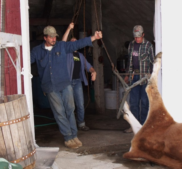 I was thinking about all this work as I rendered the lard in the warm sun. There was plenty of time to think as I chased away chickens and stirred the lard down, occasionally running into the butcher shed to bag a portion of apples. I could hear from within the butcher shop walls some singing and laughter from two of the kids assigned apple peeling duty. Also to be heard, was the radio from the front porch blasting where the other two kids were completing the crab apple jelly job. (Our family loves music and are likely to be found singing often during the day.) We were accomplishing plenty of tasks but at the same time the kids were having fun or at least making the jobs fun. I sure hope I don’t paint a too rosy picture of family life:); yes our kids are like all kids the world ’round. They argue just like your own kids do! I write this because it is probably the number one question that has been asked of us over the years while performing as The Callens Family.