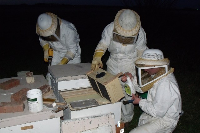 Fred called at around noon and said that the Twins needed to check the new bee hives. It took a lot longer than we had anticipated, to the tune of around 2 hours, but it had to be done. In the mean time, the kids left behind kept working and I must say here, the kids have something that I never had growing up, (sorry Nonna), work ethic! Afterwards, we joined the kids for more hurried planting.